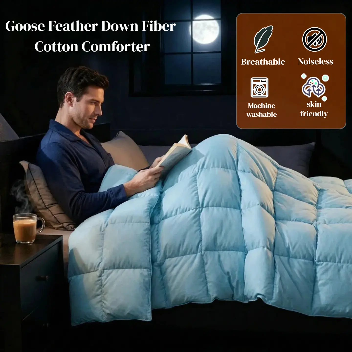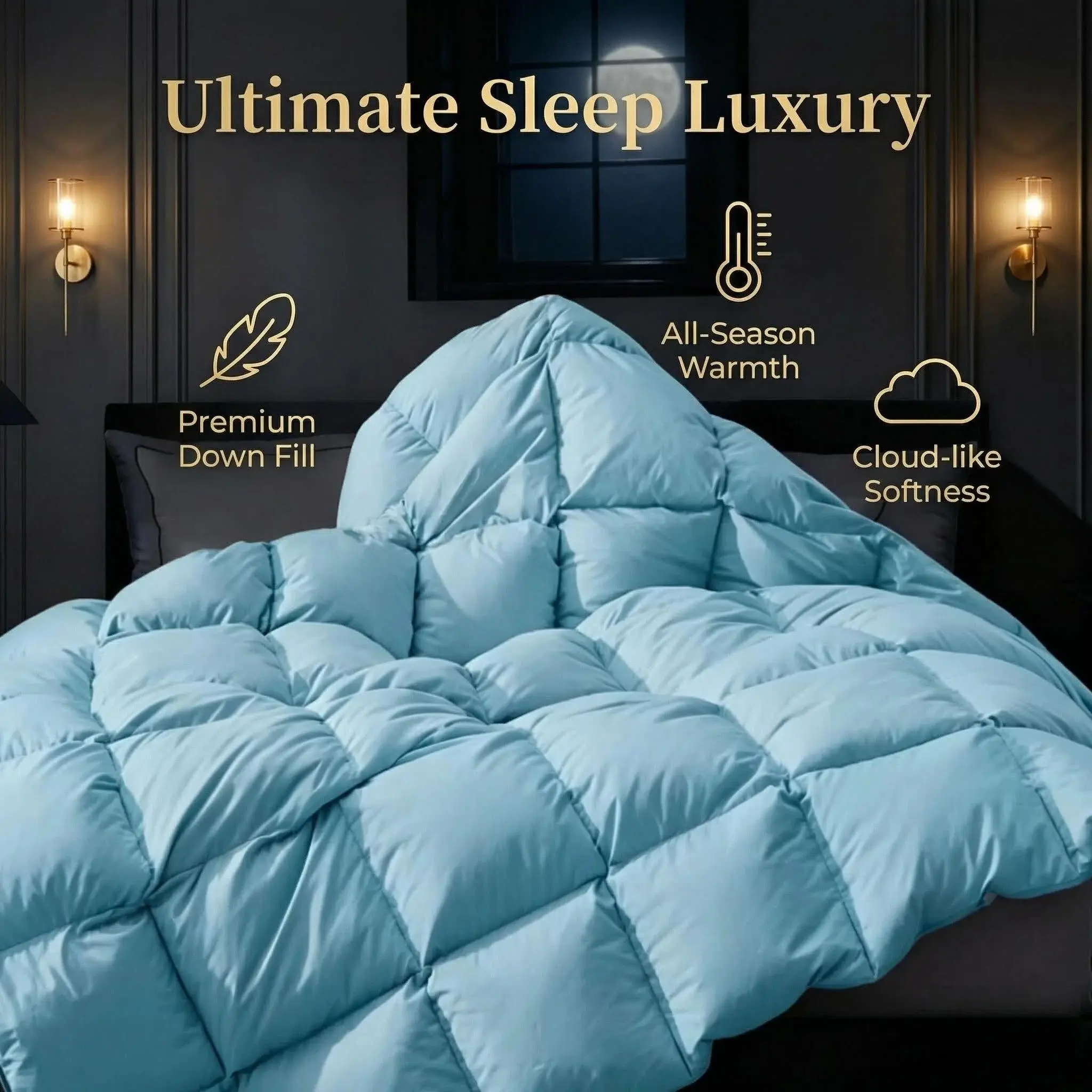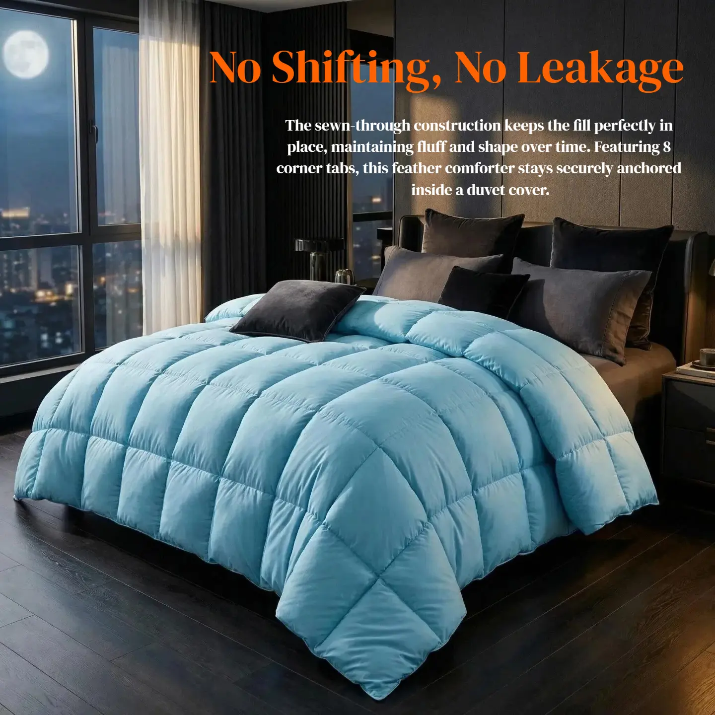 【Elegant Craftsmanship】With End-To-End sewn-through box construction, the down could be evenly distributed in its proper place and keeps the down from shifting. So you always have a plush, fluffy comforter that retains its shape. The comforter has 4 Corner Loops, which is very convenient for attaching a duvet cover and anchor the down comforter from shifting. All our comforters feature self-piping stitching to enhance their durability and prevent the down from sneaking.
