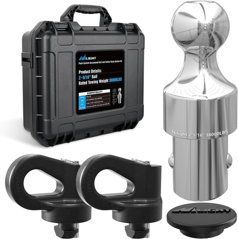 ·【Towing Capacity】The gooseneck hitch ball boasts an impressive 38,000 lbs GTW and each safety chain anchor has a 30,000lbs GTW. They can provide strong strength and long stability to meet your towing heavy loads.