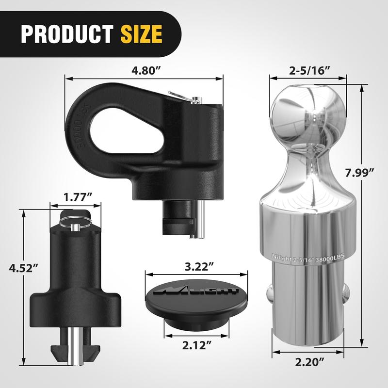 ·【Durability】The chrome plated finish hitch ball and black powder coated finish chain anchors make this kit weatherproof and corrosion-resistant.