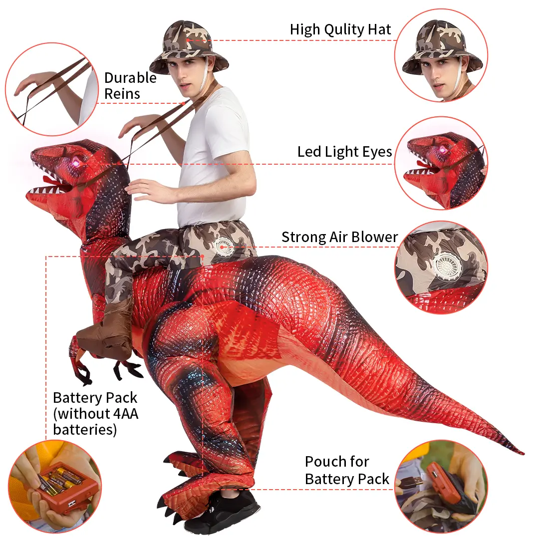 ·This inflatable dinosaur costume is easy to blow up, making it a hassle-free choice for your Halloween attire. It's a great way to stand out and have a blast at your next Halloween gathering. 🎉