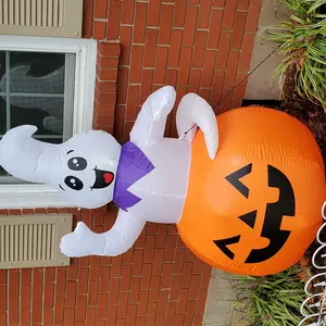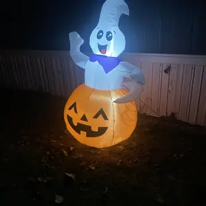 ·【Cute Halloween Inflatables Pumpkin Ghost】The cute inflatable ghost has emerged from the pumpkin and is happily saying hello to everyone. The Funny shape is sure to be loved by children! Built-in bright LED lights in the body, making your pumpkin ghost inflatables Halloween fun!