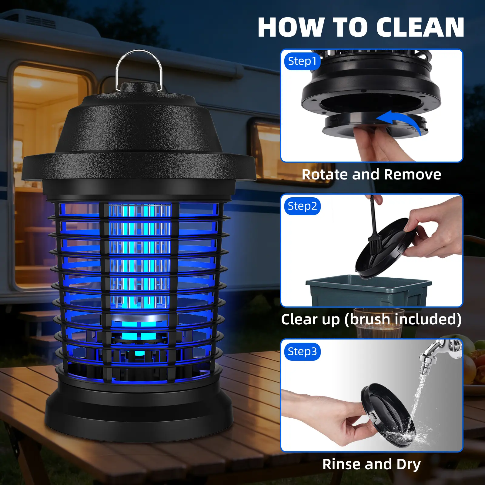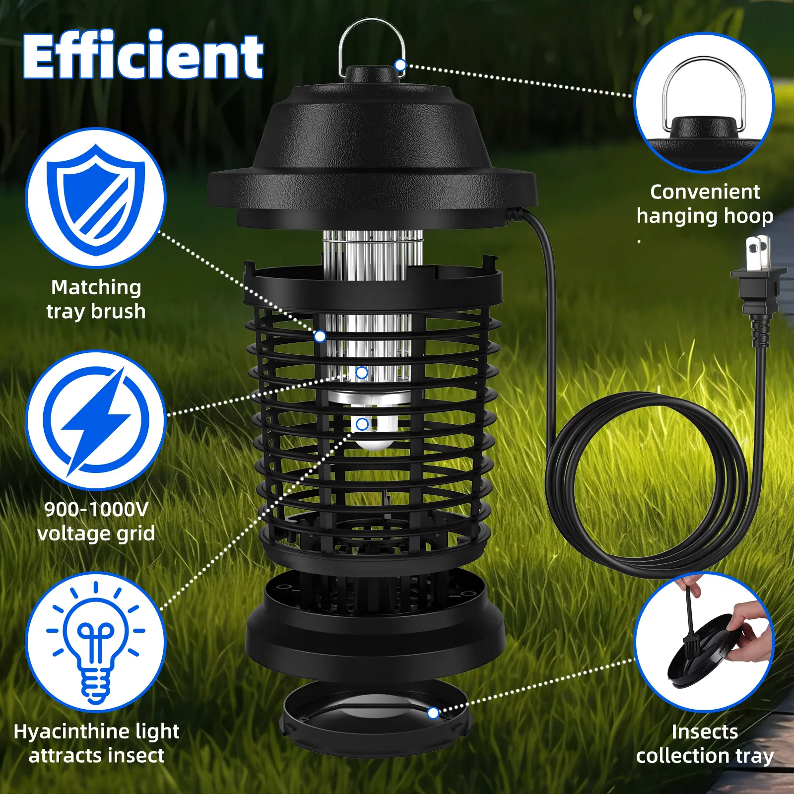 ·Light Type: Blue-violet UV light to attract flying insects.
