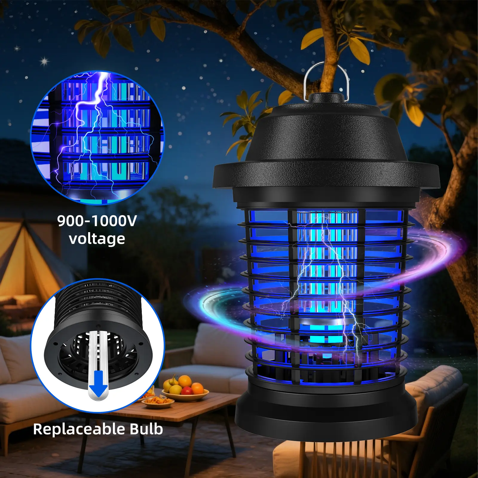 ·Grid: High-voltage electric grid for immediate insect elimination.