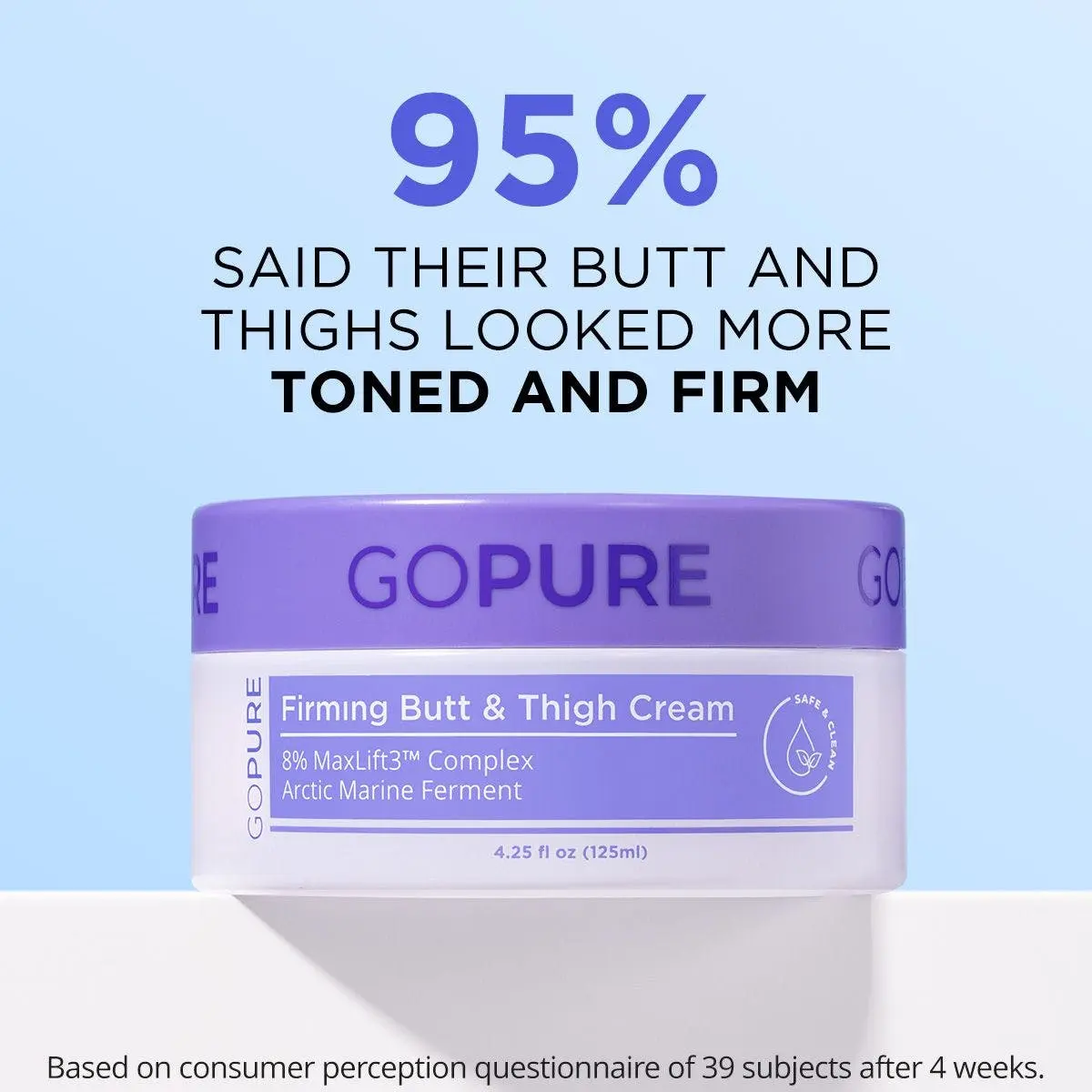 goPure Firming Butt & Thigh Cream – Smooths the look of dimpled texture, fades the look of stretch marks. Clinically Tested.