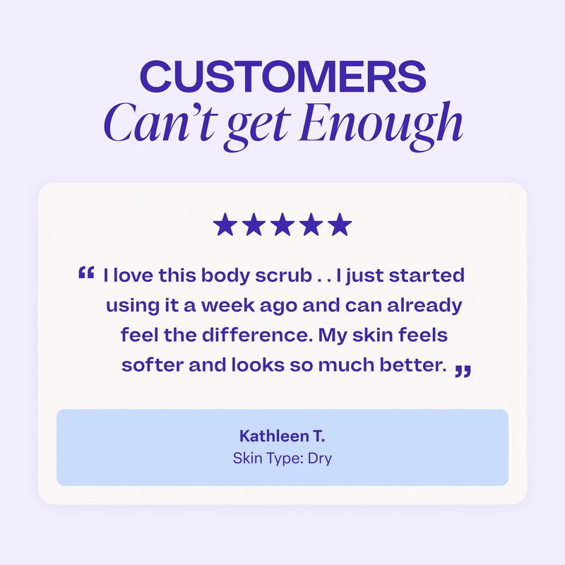 This is the best body scrub I have ever tried. I went from super dry, itchy skin, to silky soft and hydrated in less than a week.
