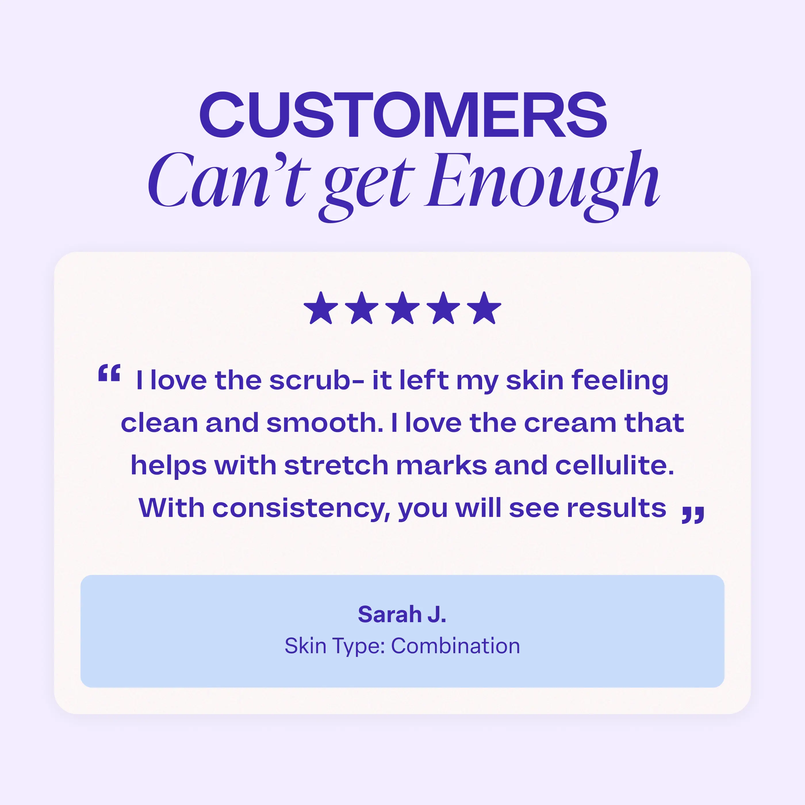 Your ultimate firming + smoothing routine for radiant, touchably soft skin 💖 - Refine & Renew Body Scrub: Gently buffs away dry skin for a silky-smooth glow. - Tighten & Lift Neck Cream: Firms + hydrates the look of skin below the chin. - Tighten & Smooth Belly Cream: Visibly tightens, tones, and improves the look of stretch marks + texture. Smooth. Sculpt. Glow. Everything you need to exfoliate, firm, and hydrate from neck to belly ✨