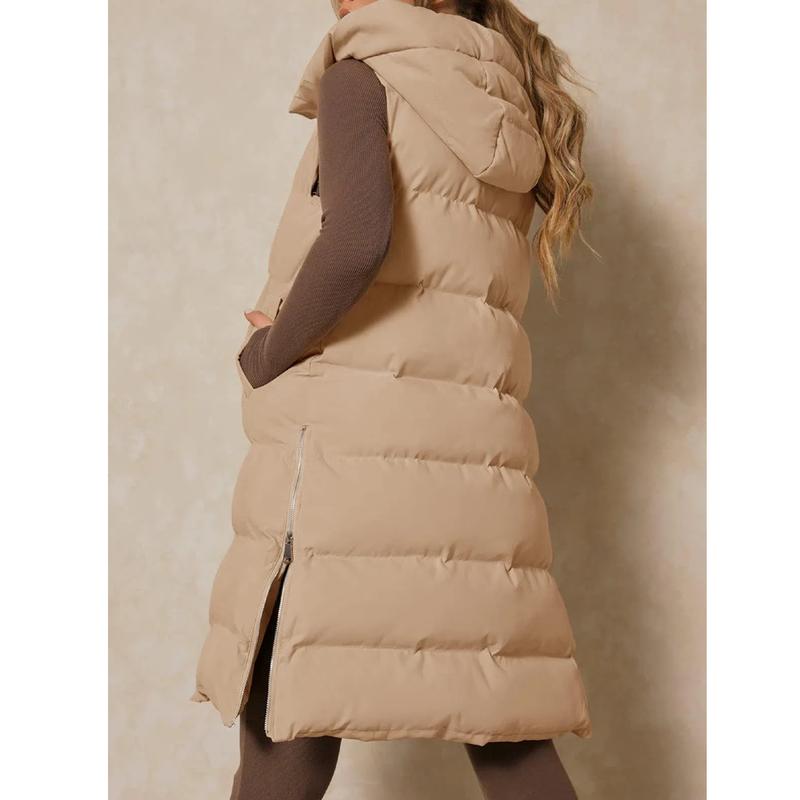 ·Feature: Long Down Vest For Womens, Zip Up Closure, Lightweight, Sleeveless Hooded Puffer Long Jacket Coats For Women, Pockets, Solid Color, Cute And Fashion.