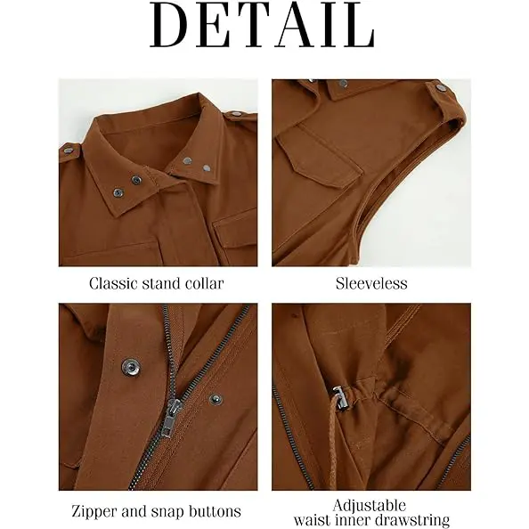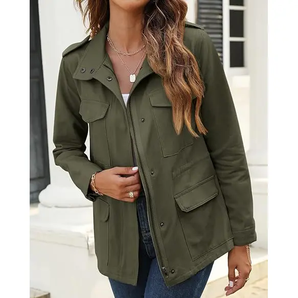 ·Functionality: Center front hidden zipper paired with snap buttons, four flap pockets for ample storage,adjustable button cuffs for comfortable fit.
