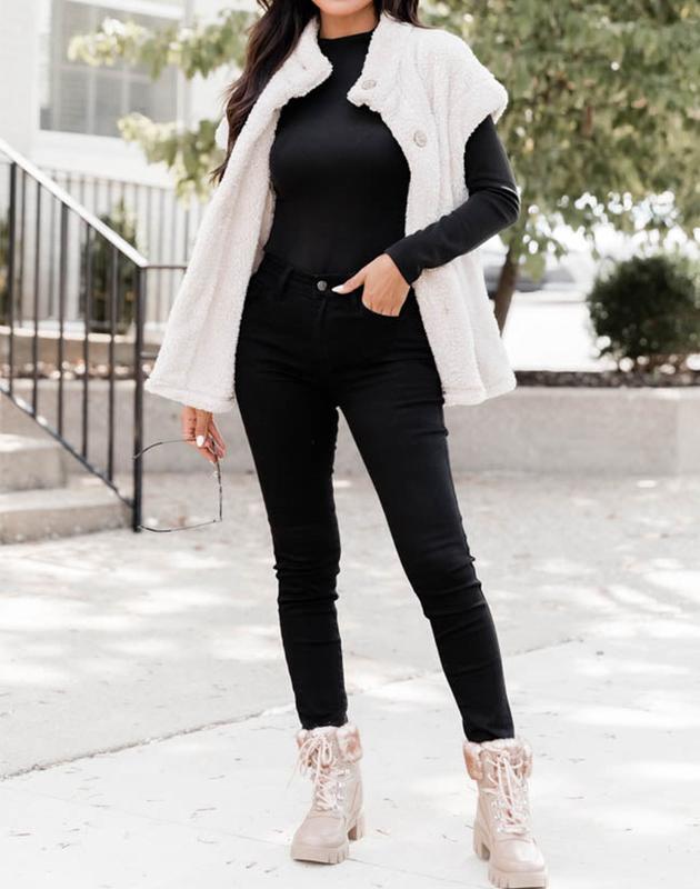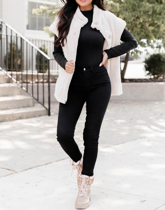 ·Features:Stand collar /Sleeveless /Thigh-Length / Baggy style /Side pockets /Solid color /Sherpa Vest For Women /Casual Loose Fleece Vest For Women.