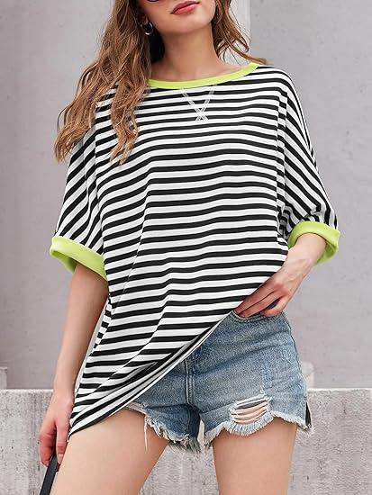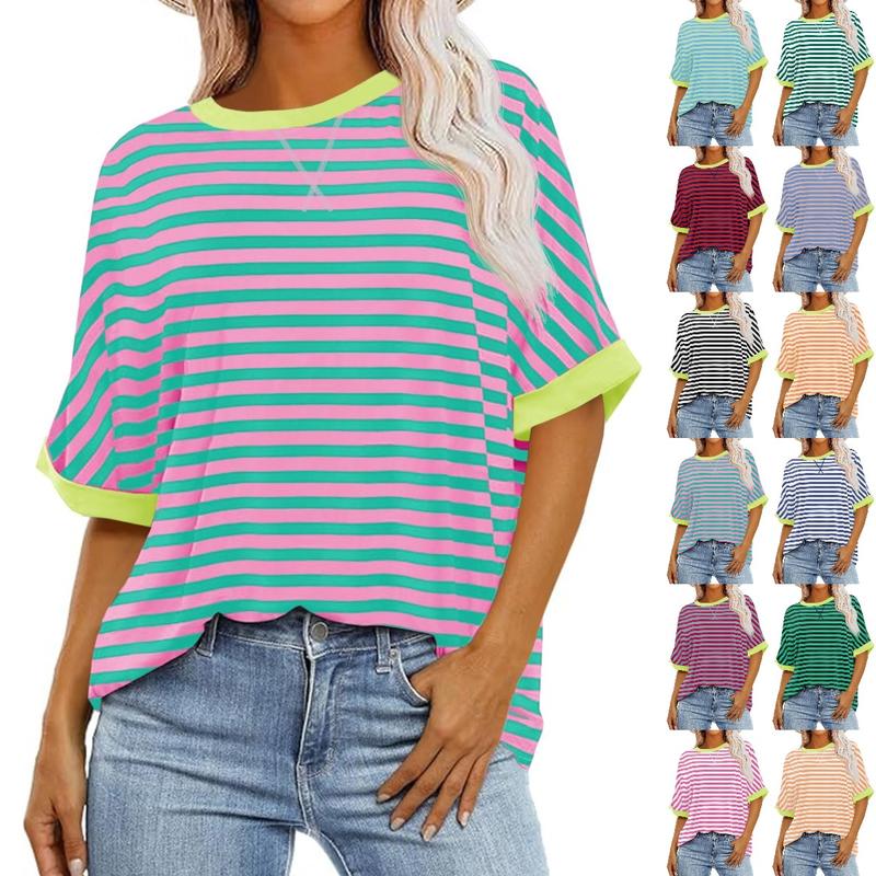 ·Features: Casual striped round neck half-sleeved top, simple and fashionable, a must-have for summer wear
