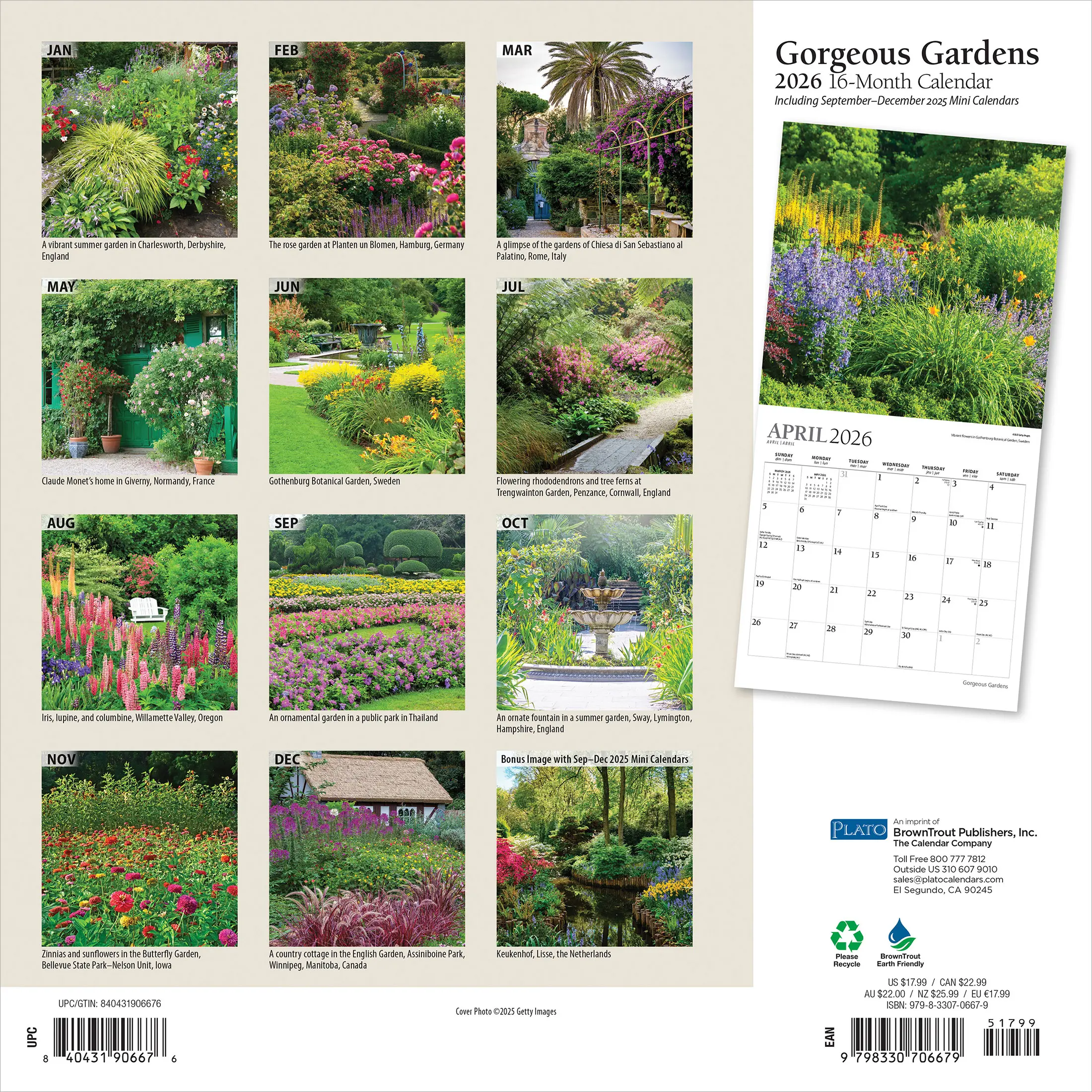 A garden is a place of undiscovered beauty. At every corner there is something blossoming, and nature's paintbrush creates a vivid tapestry of textures, sights, and sounds. Sitting in a garden surrounded by colors and life can offer a moment of respite from a chaotic and noisy world. The vivid photographs in this calendar will transport you to those beautiful and lovely places.