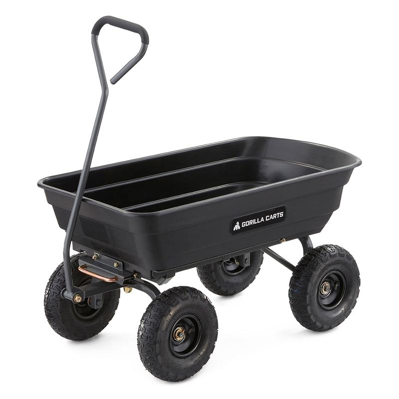 Haul heavy loads and get your items where they need to go with the Poly Garden Dump Outdoor Yard Rolling Haul Utility Cart from Gorilla Carts. With a carrying capacity of up to 600 pounds, this industrial wagon cart is great for transporting heavy objects through your yard, throughout the garden, or around the farm.