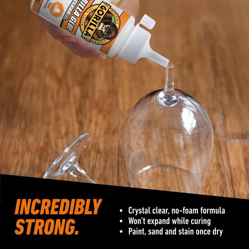 5. Gorilla 3.75 oz. Clear Glue, Crystal Clear Glue, Non-Foaming Adhesive, Invisible Bond Glue, Water Resistant Glue, Multi-Surface Glue, Indoor Outdoor Adhesive, Strong Clear Glue.
