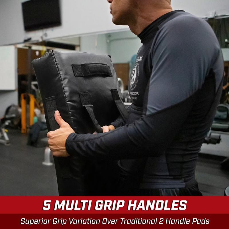 ·5 REINFORCED HANDLES: Strategically placed handles to provide superior control over the traditional 2-handle blocking pads - use for football, basketball, mixed martial arts, and more