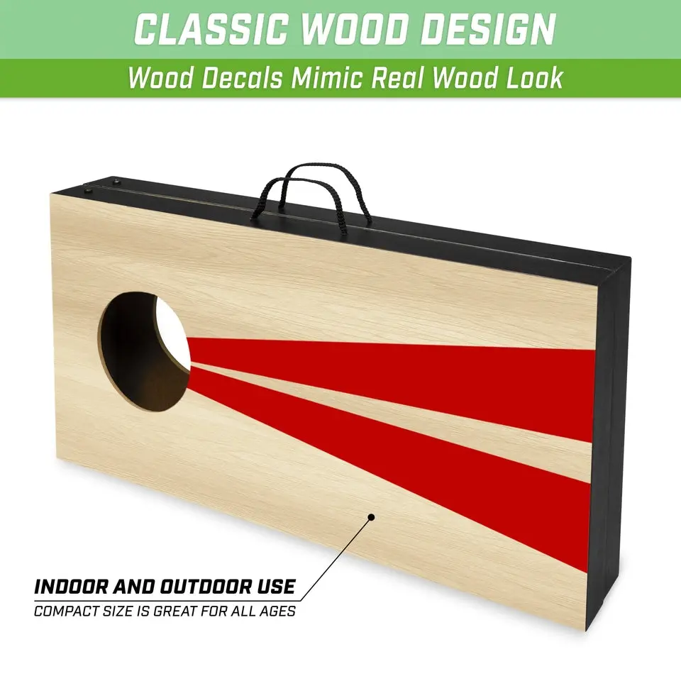 ·FINISHED WOOD DESIGN: Cornhole boards designed with decals that look like finished solid wood for a classic style