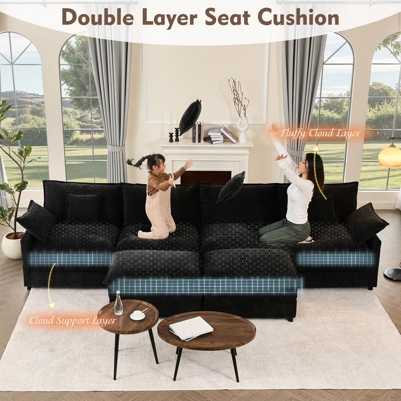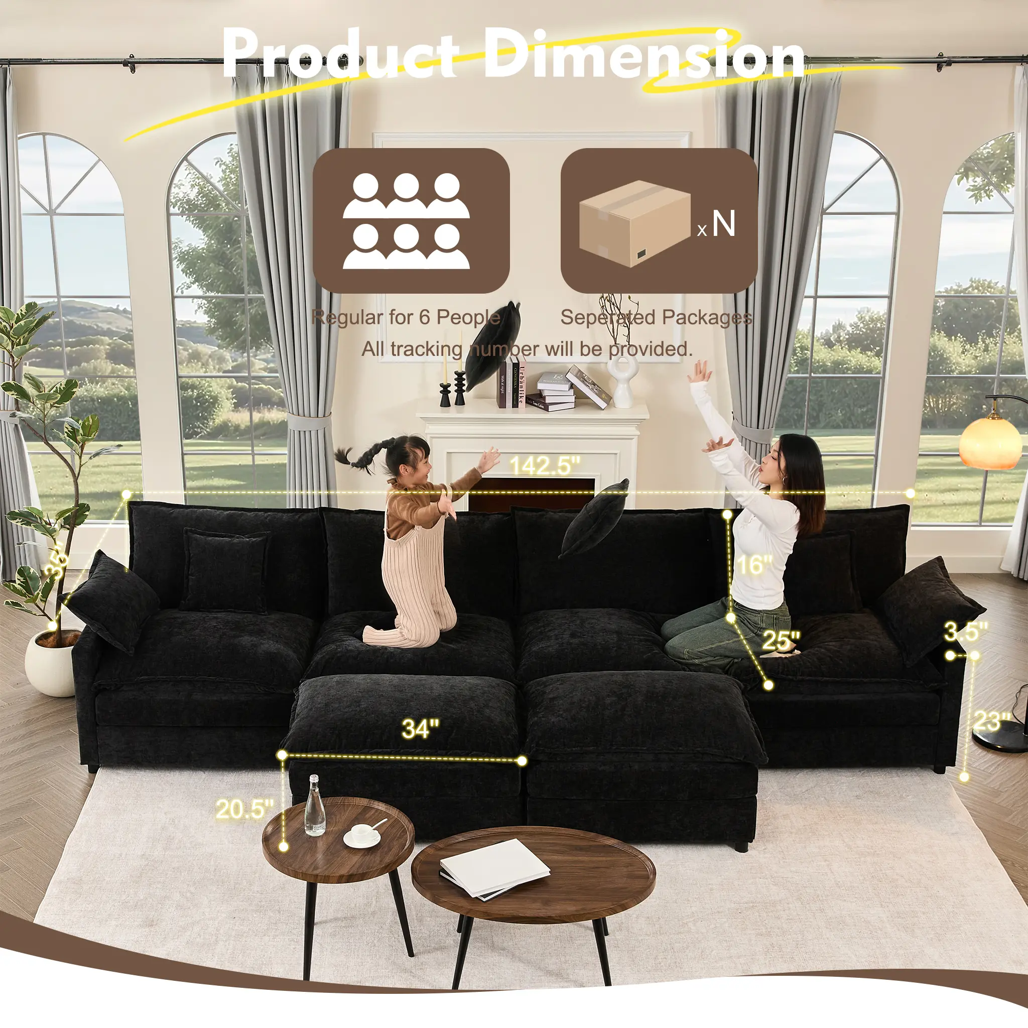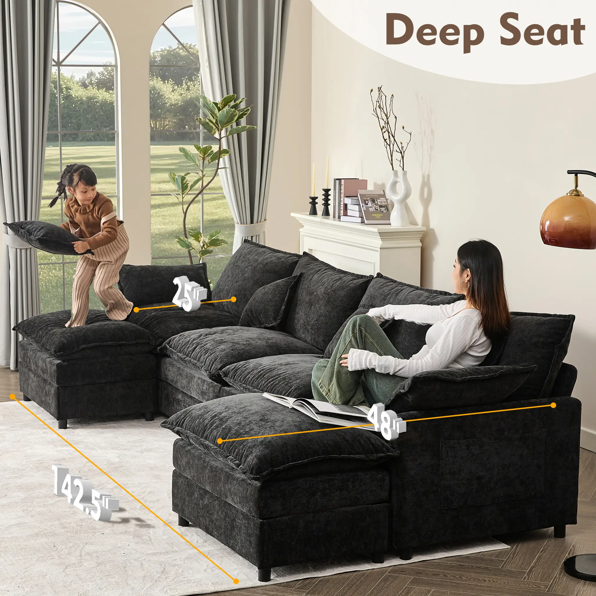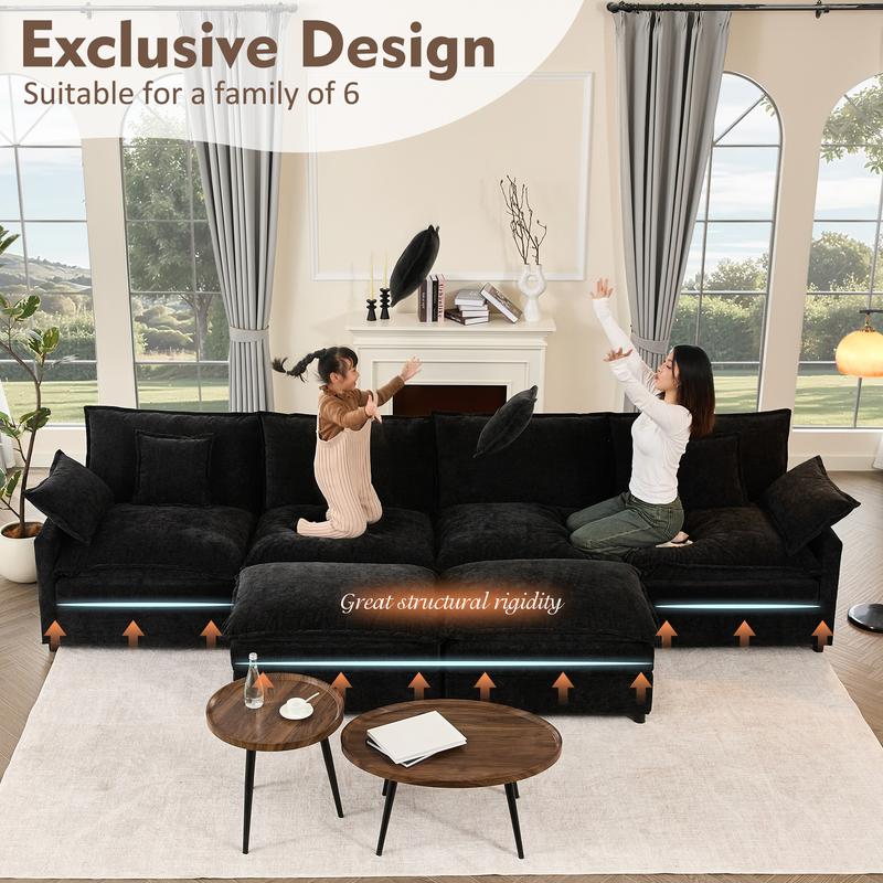 ·Unique Chenille Fabric: The cloud couch is made of fluffy chenille fabric and has a unique appearance and feel. The overall appearance of the sectional sofa is very elegant and exquisite, with surface textures that make it resistant to dirt, wear, easy to care and it can be Machine washed and dried. And we can PROVIED ALL COLOR FABRIC SAMPLES for you to review and choose from