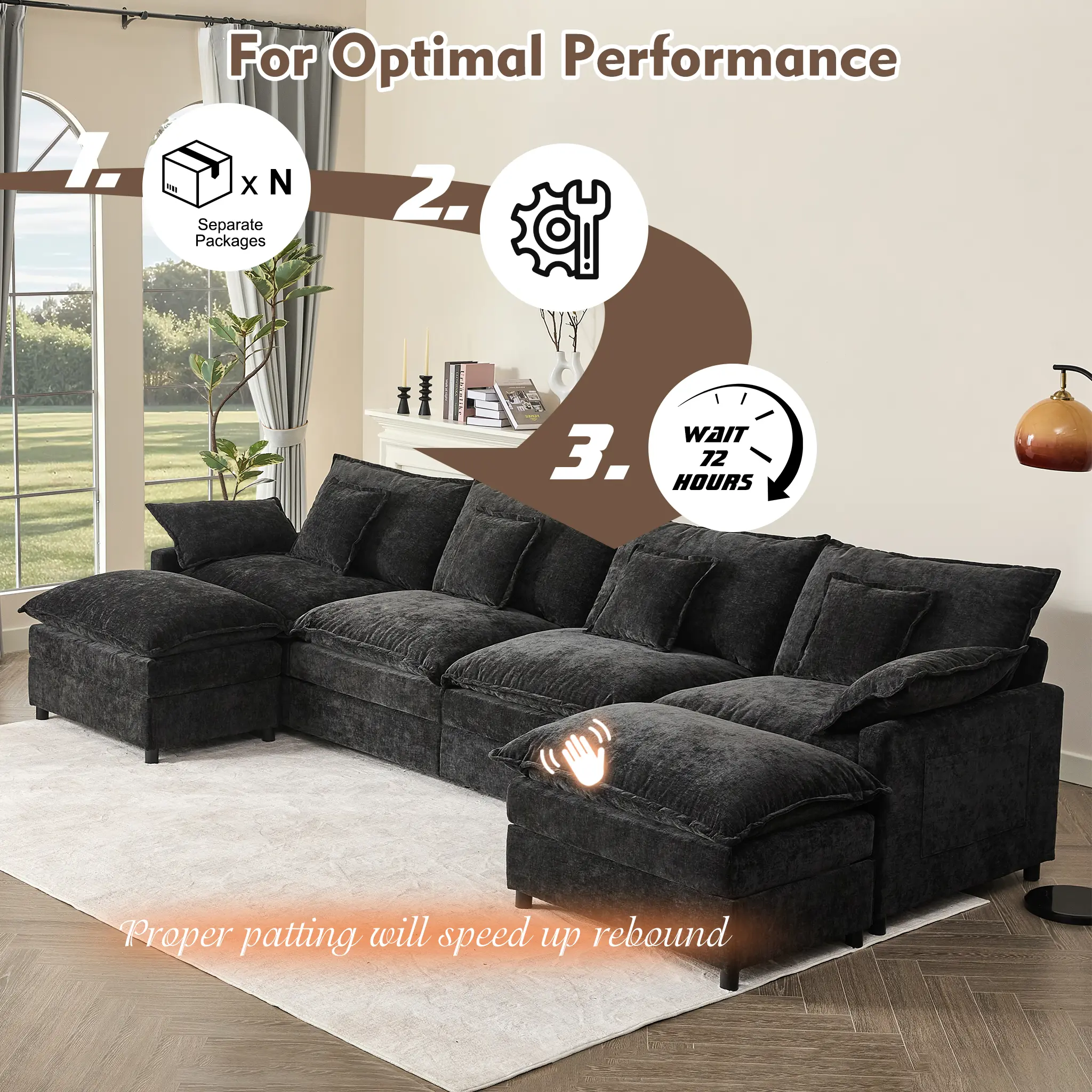 ·Easy Assembly: The modular couch requires some assembly, we provide all necessary tools, instructions, and an installation video to make the process enjoyable. And using power tools will make the assembly even easier. And our cushions are made of high-quality foam. After unpacking, proper patting will speed up the rebound process. Wait for a maximum of 72 hours for the sofa to reach its optimal state, and you'll enjoy the best experience