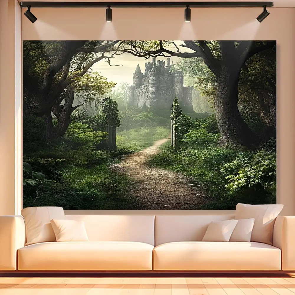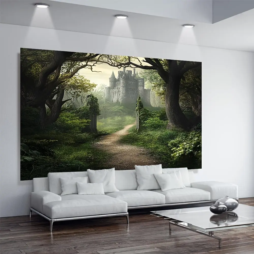 1pc 2D Flat Gothic Medieval Castle & Misty Forest Backdrop - Durable Polyester Banner in 3 (, , in) - Ideal for Room Decor & Themed Parties, Machine Washable, No Electricity Required
