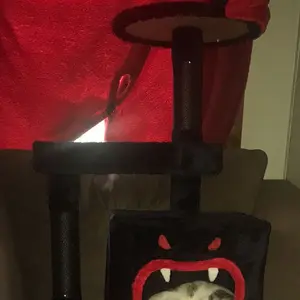 Gothic Style Design: Featuring black and red plush fabric and a haunting design, this cat tower for indoor cats emanates a darker, more sophisticated allure; The feline furniture not only mesmerizes cat interest but also acts as a distinctive Halloween-themed home decor item