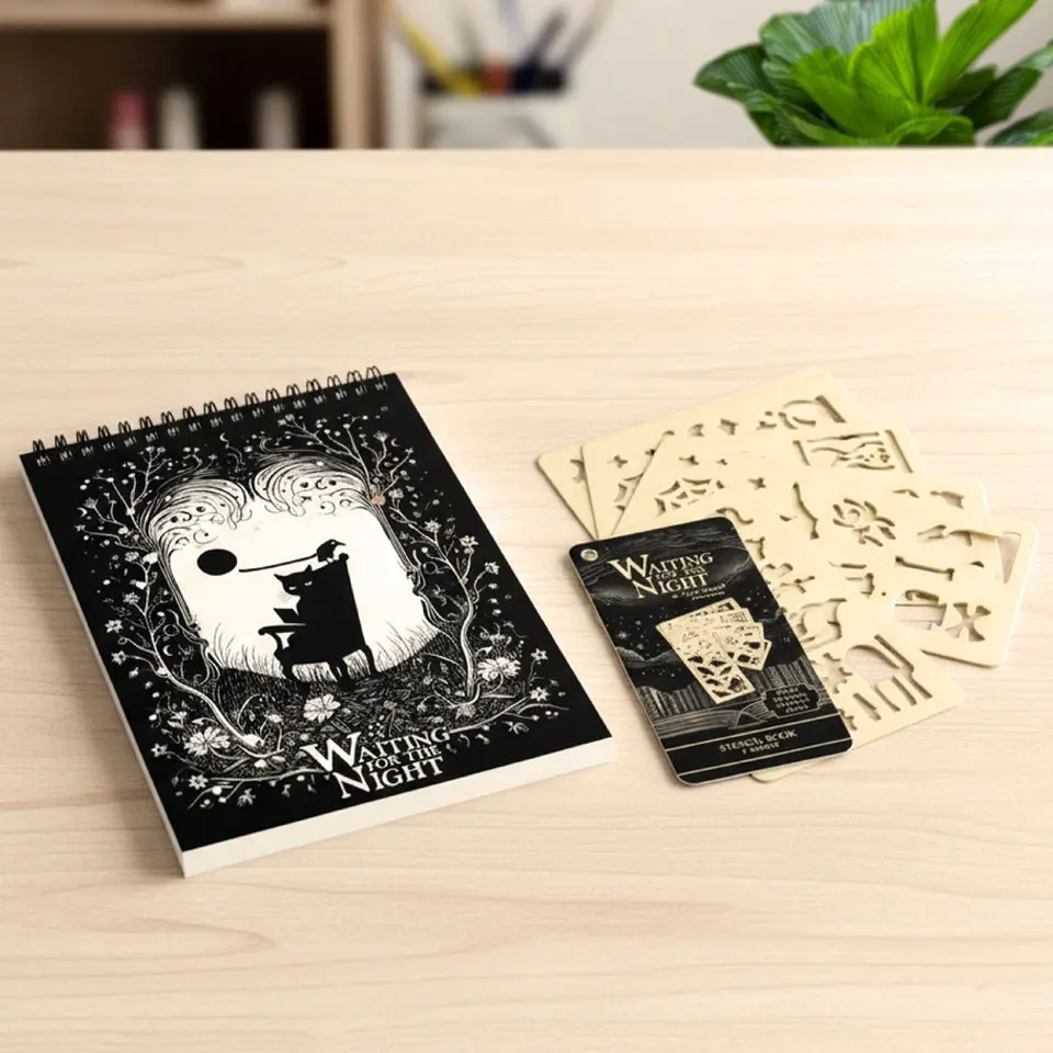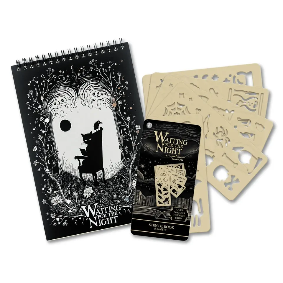 ·Waiting for the Night Stencil Book (5-Page): 5 durable, reusable plastic stencil sheets with mystical gothic-inspired designs including spiders, webs, moons, stars, candles, and potions. Perfect for decorating journals, planners, and notes, or creating your own artwork.