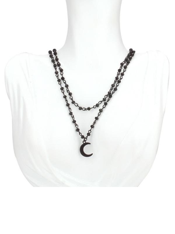 Two necklaces, lightweight plastic beads. It’s adjustable and sits nicely.