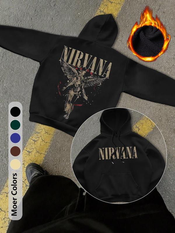 5. Gothic "NIRVANA" rock style printed men's regular fashion hoodie printed long-sleeved hooded sweatshirt jacket