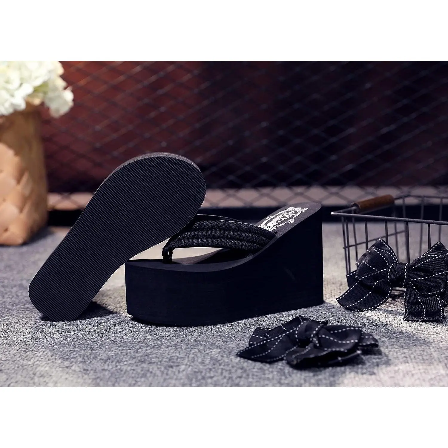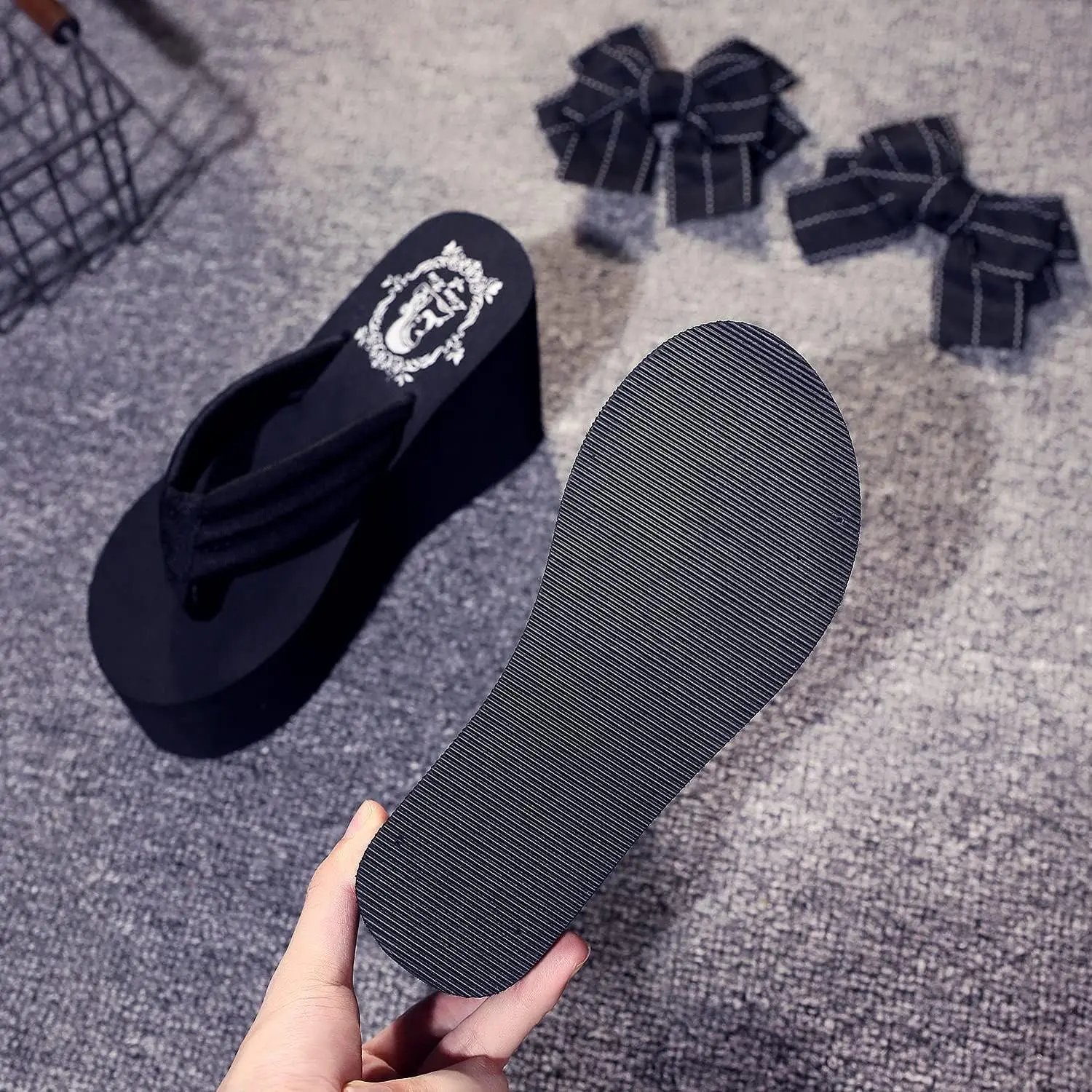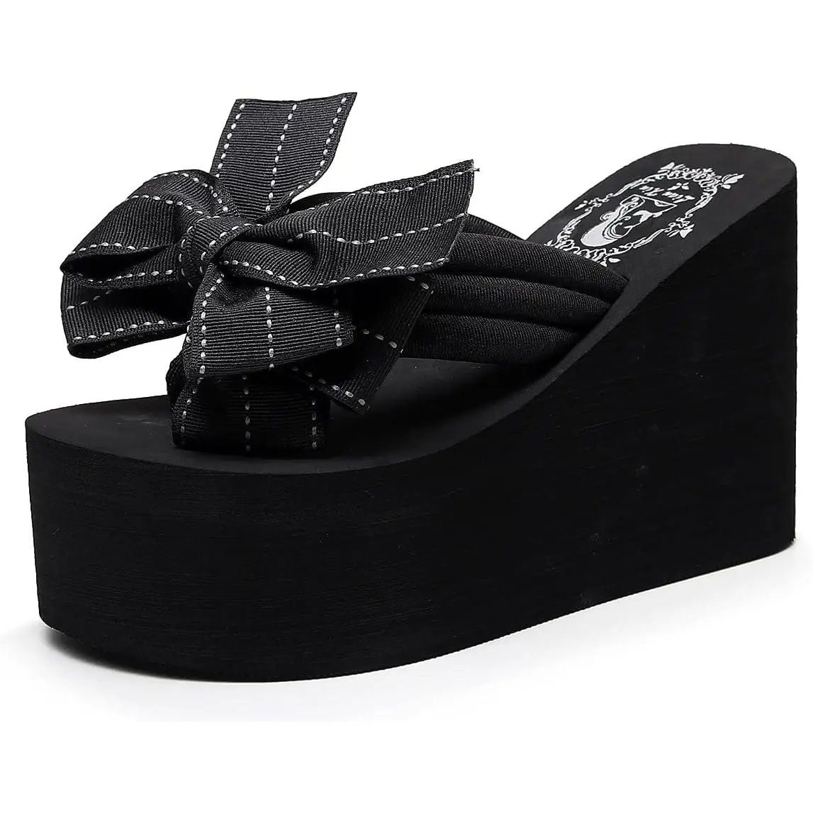 5. Momolove Womens Platform Flip Flops Gothic Sandals For Women Chunky High Heel Flip Flop Goth Wedge Slippers With Bowknot