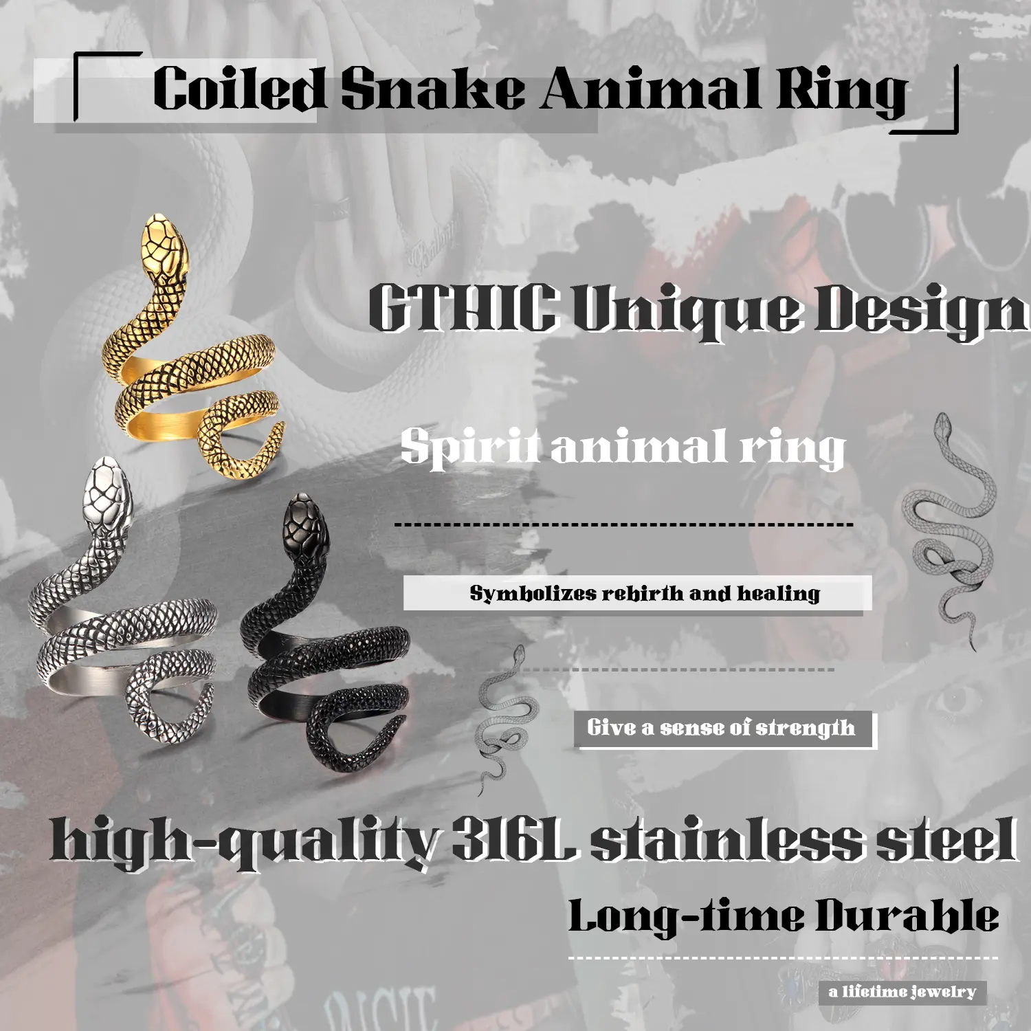 ·DIVERSE STYLE STATEMENT RINGS: from snake-themed events to everyday wear, mysterious fashion jewelry can be easily paired with a variety of styles, making it a versatile accessory for those who appreciate punk fashion.