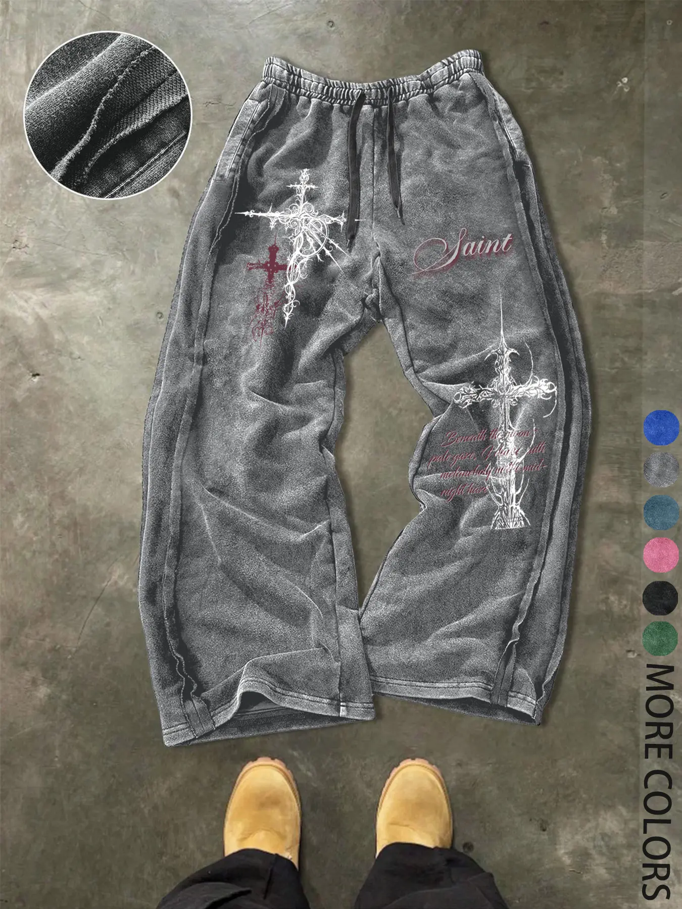 Unisex Gothic Street Style Saint's lettering and Gothic cross pattern print Cotton Sweatpants, Loose Fit Elastic Waist, Casual Fashion Pants for All Seasons,Gothic outfits, Men's Daily Wear Gift #prettygardensweatsuit #womenspantssuit #workoutsweatpants #womenssweatshirtset #aeriechristmaspajamas #fitnessbottoms #maternitywidelegpants #bestbaggysnowpants #christmasembroideredsweatshirts #trackpantoutfit