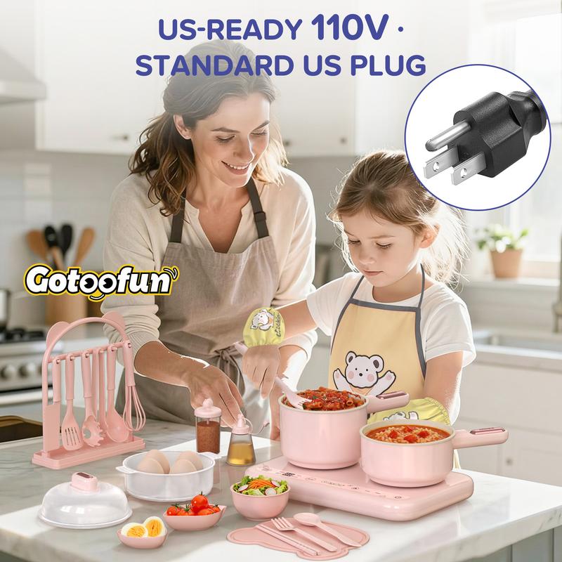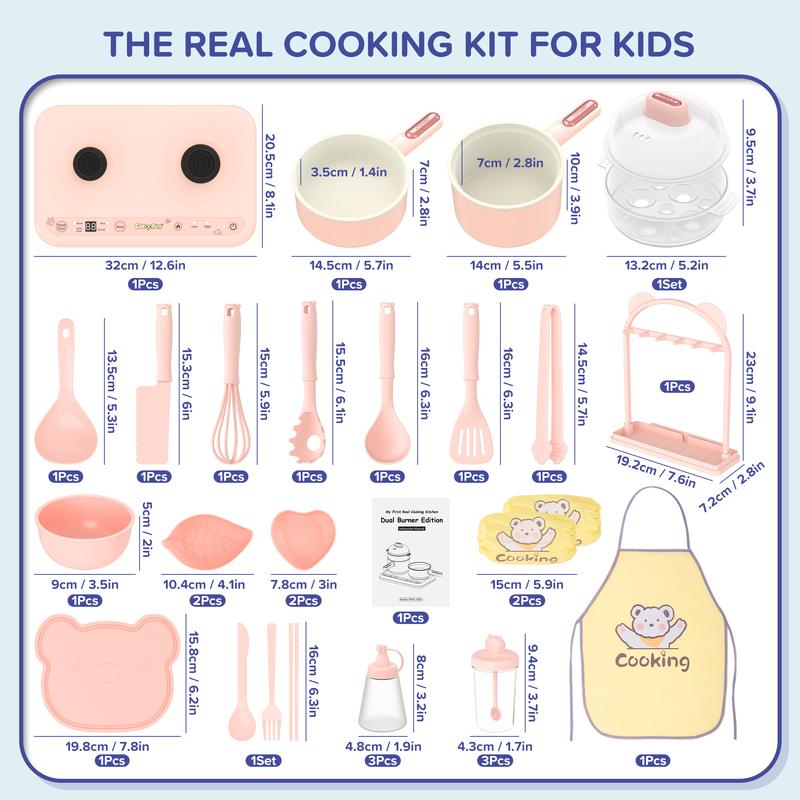 Gotoofun Pink Double Stove Children's Real Cooking Kitchen Set Safe Mini Kitchen for Boys Girls Compact Multifunctional Cooking Toys Montessori Gift for Girls/Boys 8–12