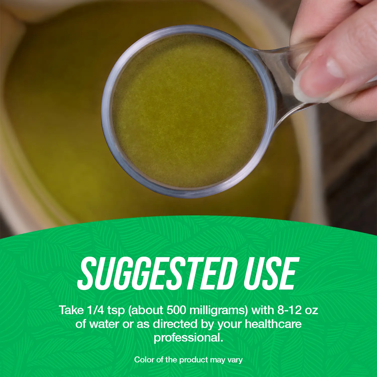 Suggested Use: Take 1/4 tsp (about 500 milligrams) with 8-12 oz of water or as directed by your healthcare professional.