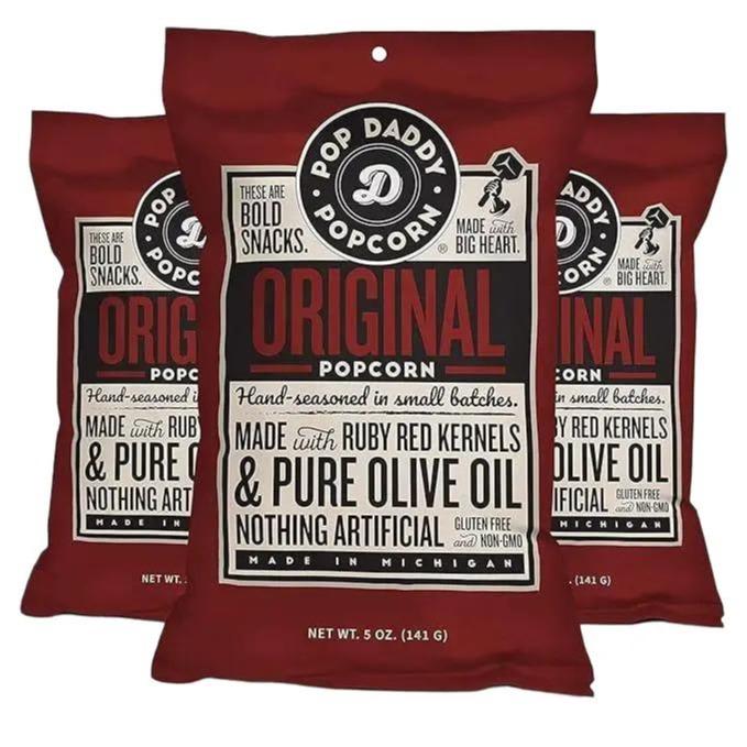 5. Pop Daddy Flavored Popcorn Gourmet | Original Flavor | Hand Seasoned Ruby Red Kernels Gluten Free Popcorn Snacks | 5oz Individual Bags | 3 Pack