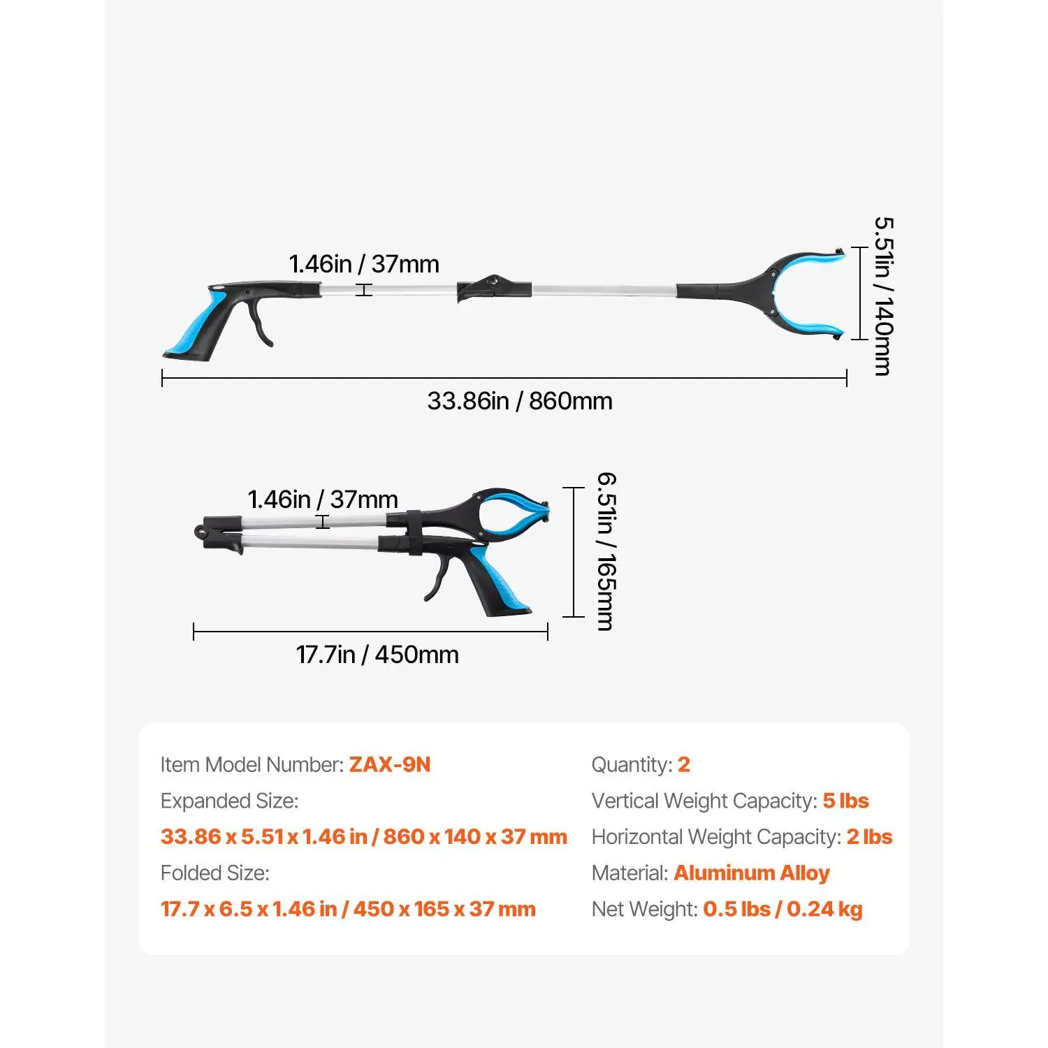 • Foldable and Portable: Our trash grabber tool folds to just 17.7 inches, saving storage space. Compared to one-piece reachers, it's more portable, allowing you to easily grab items anytime, anywhere.