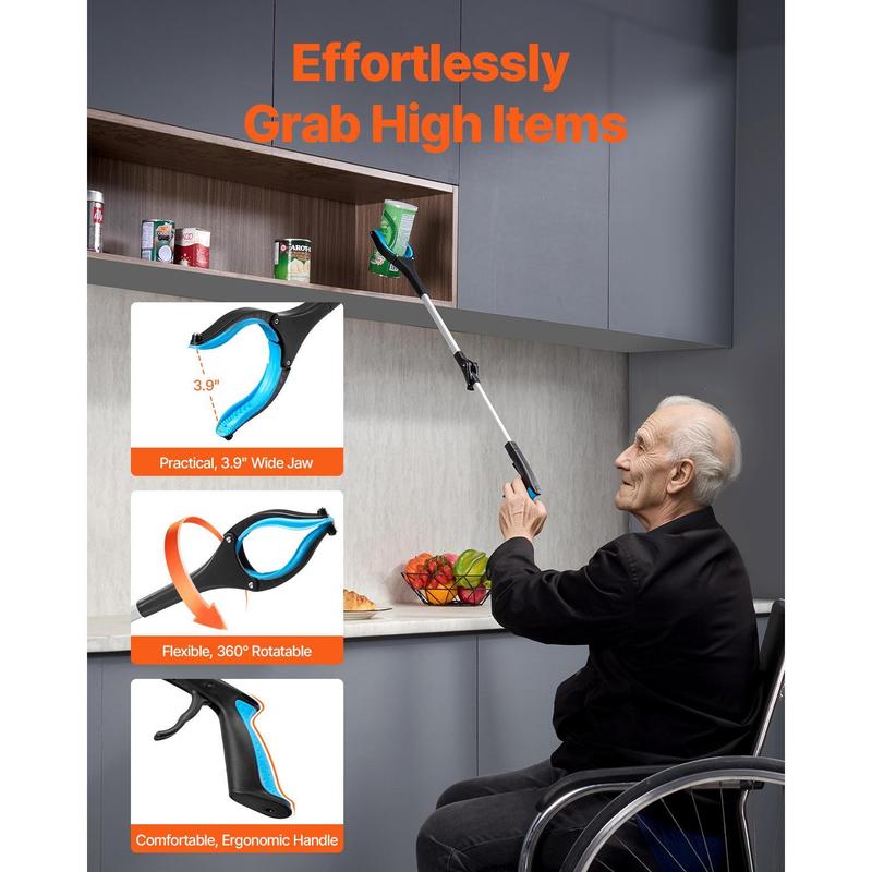 5. VEVOR Grabber Reacher Tool, 2-Pack 34" Foldable Reacher Grabber Pickup Tool with 360° Rotating Wide Jaw and Dual-Sided Magnet, Lightweight Grabber Reacher Tool for Seniors, Trash Picker Upper Grabber