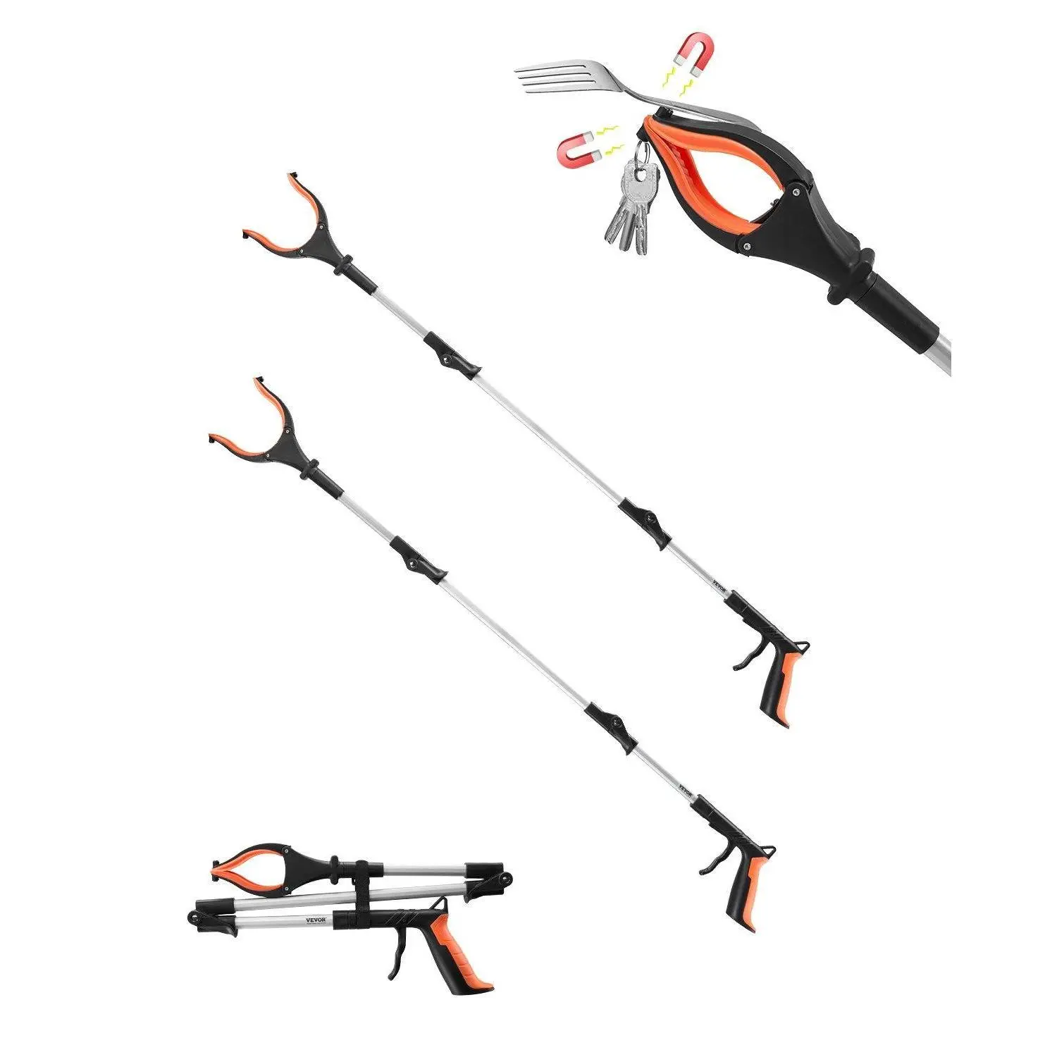 ·User-Friendly & Convenient: Our reacher grabber pickup tool features dual side magnets to easily pick up metal items like keys, coins, batteries, and spoons from corners. The ergonomic handle ensures a comfortable grip, making it effortless to use for extended periods.