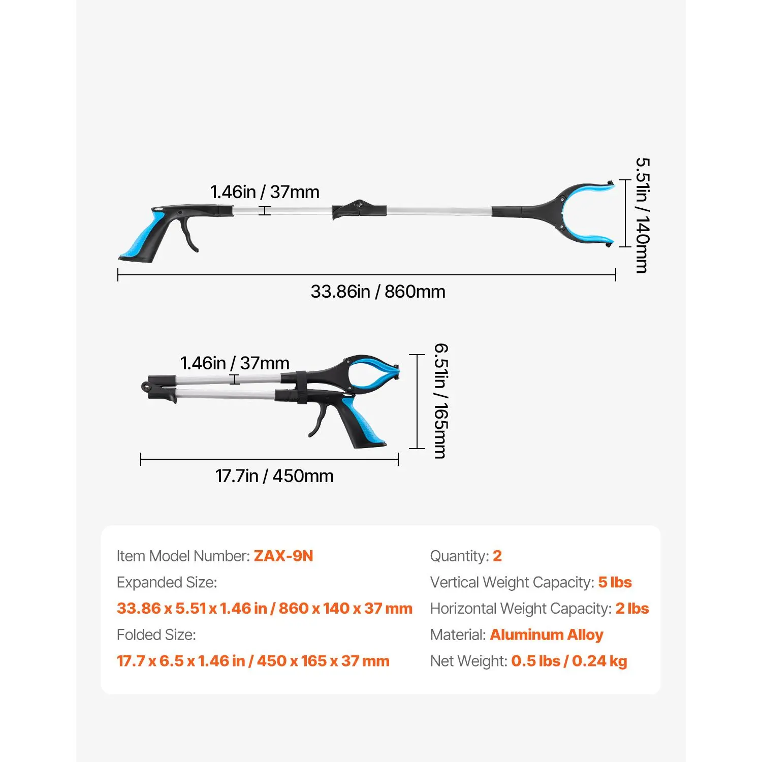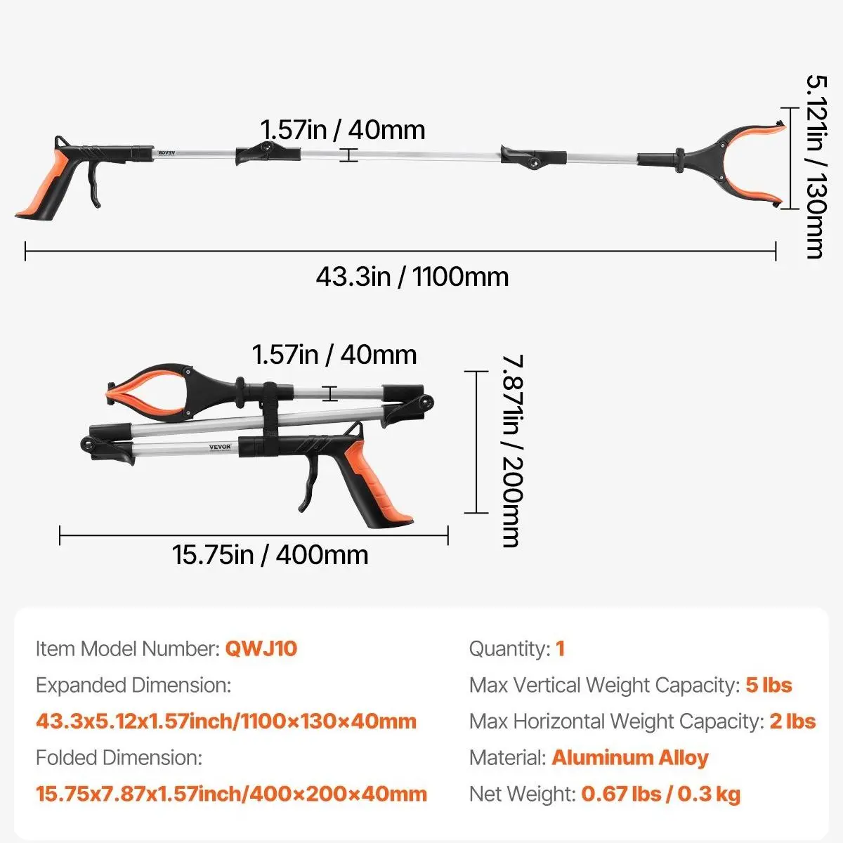 • Foldable and Portable: Our trash grabber tool folds to just 17.7 inches, saving storage space. Compared to one-piece reachers, it's more portable, allowing you to easily grab items anytime, anywhere.