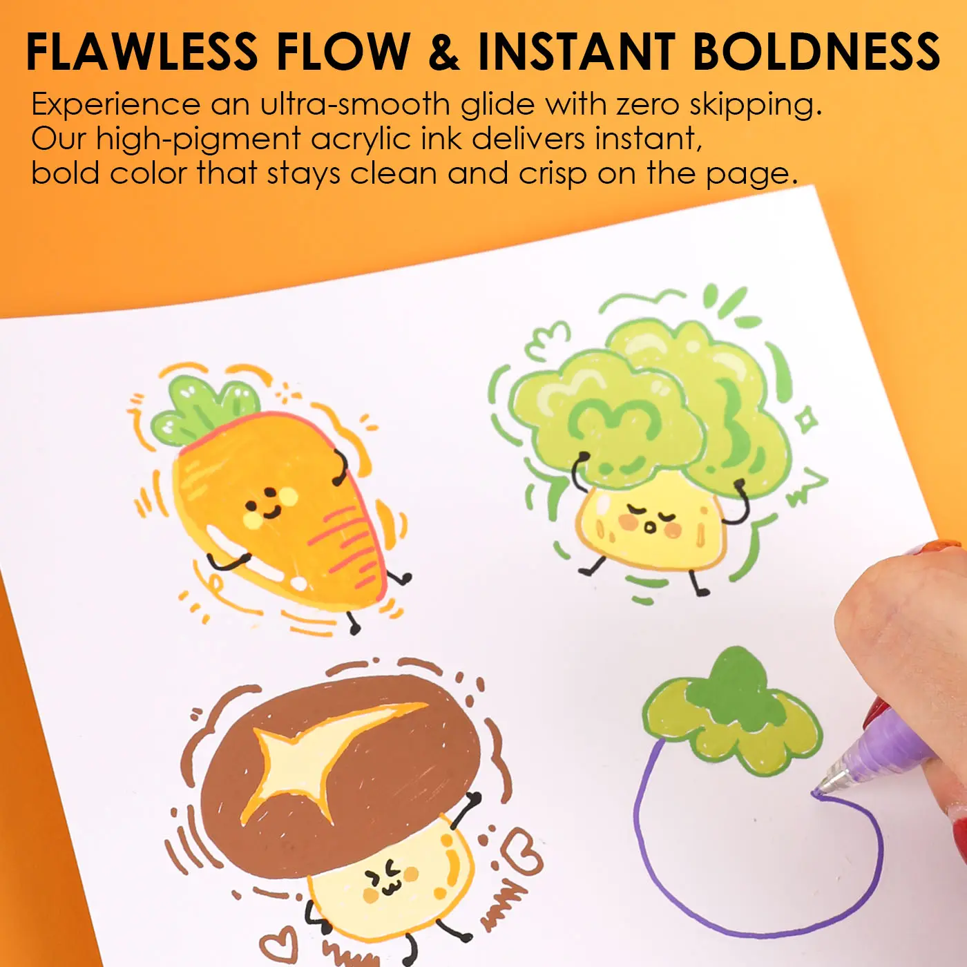 ·PREMIUM OPAQUE ACRYLIC GEL INK - Experience the superior performance of our specialty ink. Our formula is engineered to be exceptionally bold and highly opaque, allowing colors to stand out beautifully on both light and dark papers. This advanced acrylic gel ink ensures a skip-free, consistent flow and is designed to resist smudging, keeping your finished art clean and professional.
