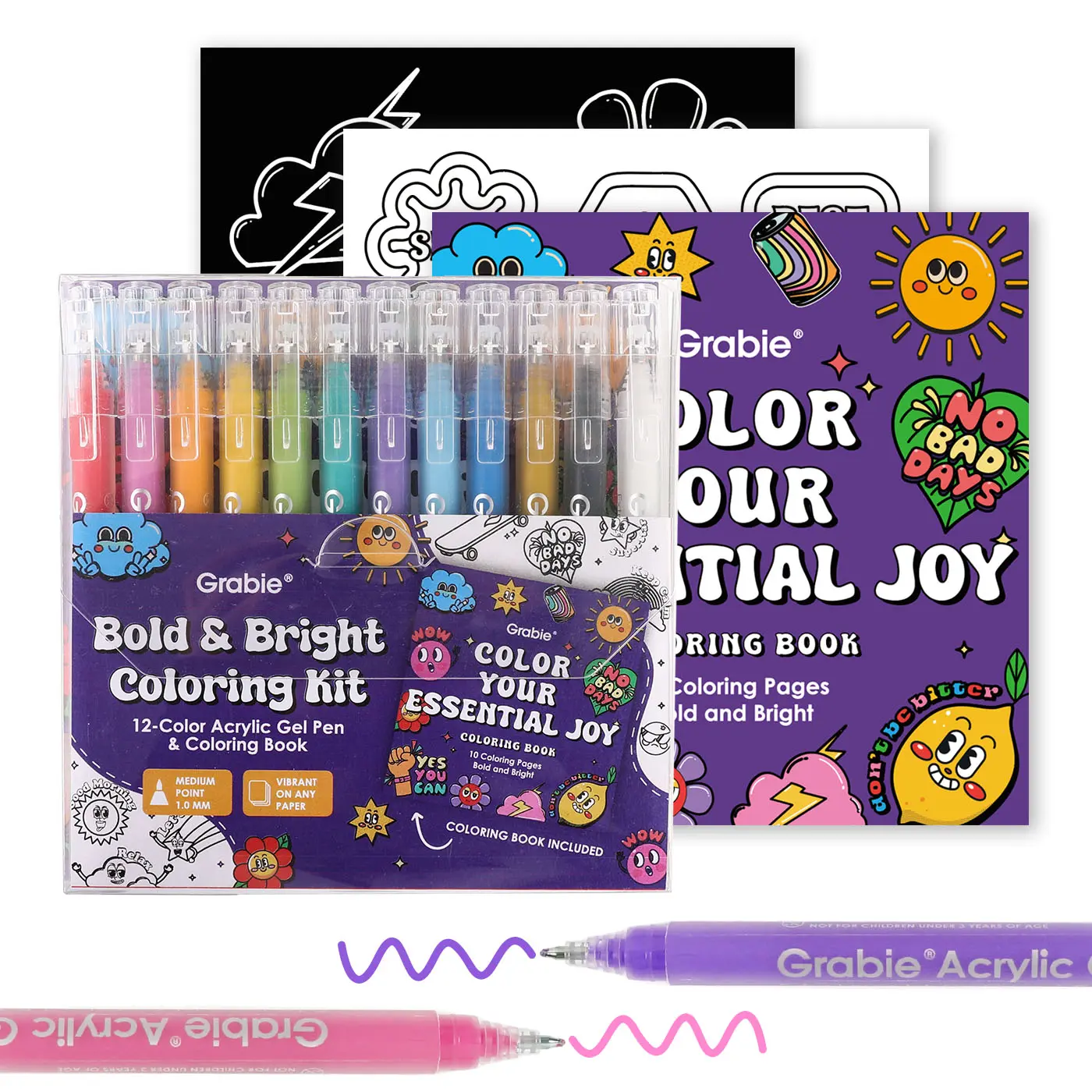 Grabie Bold & Bright Coloring Kit, 12-Color Acrylic Gel Pen & Coloring Book, TiktokShopSpringGlowUp, RefreshedLook