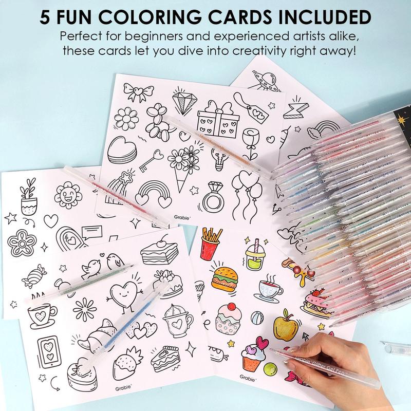 ·CREATIVE EXPLORATION WITH COLORING SHEETS - To inspire your creativity, this gel pen set comes with 5 thoughtfully designed coloring sheets. Perfect for artists at any skill level, these sheets provide a relaxing canvas for you to explore and unwind, transforming your coloring experience into a joyful activity.