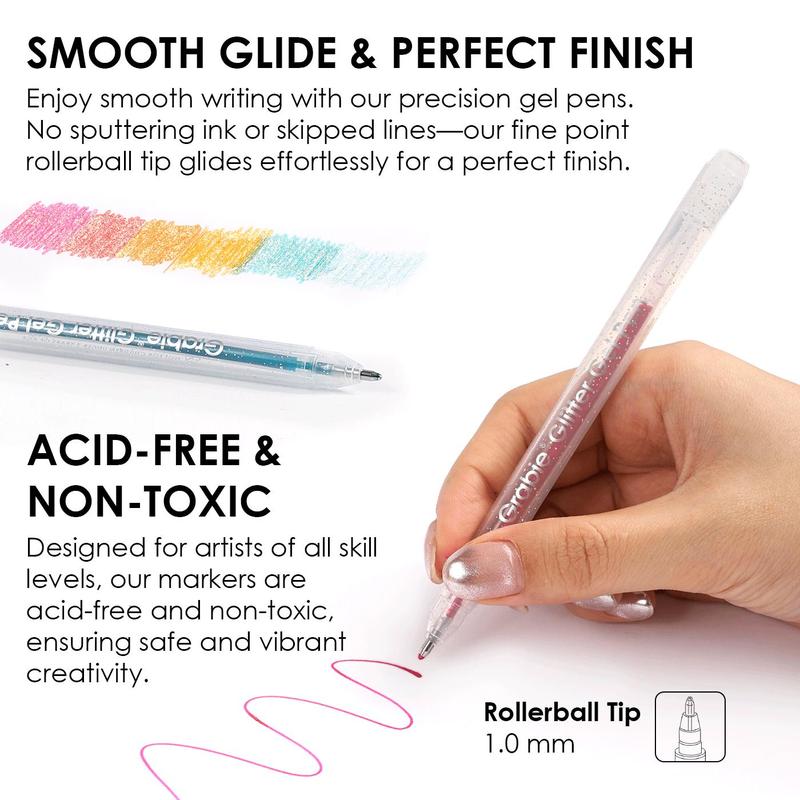·ENDLESS POSSIBILITIES - Unleash your creativity with our versatile Glitter Gel Pen Set! Whether you're crafting dazzling letters, enhancing journal entries, coloring illustrations, or jazzing up to-do lists, this professional-grade set is ideal for anyone looking to add vibrancy and shimmer to their everyday life.