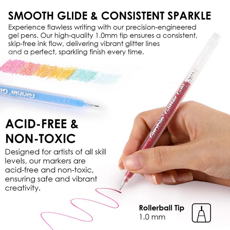 The Grabie glitter ink gel pens are great. We have enjoyed them for hours of fun