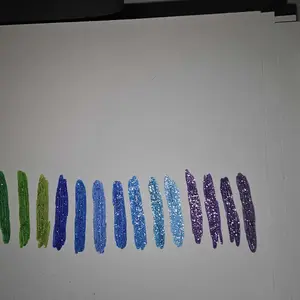 They are pretty but none of them are iridescent. They are all silver glitter. (Except for the 3 yellows, those seem to have gold glitter.) The packaging does not say anything about iridescent colors so I may have recieved the wrong ones? The description on tik tok shop says there are 18 iridescent.