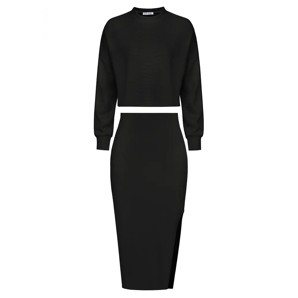 ·TWO PIECE ELEGANCE: Indulge in the sophisticated charm of Kate Kasin Women Skirt Set, featuring a cropped length top with long sleeve dropped shoulders and a matching elastic waist left slit skirt that hits at mid-calf for a graceful silhouette.