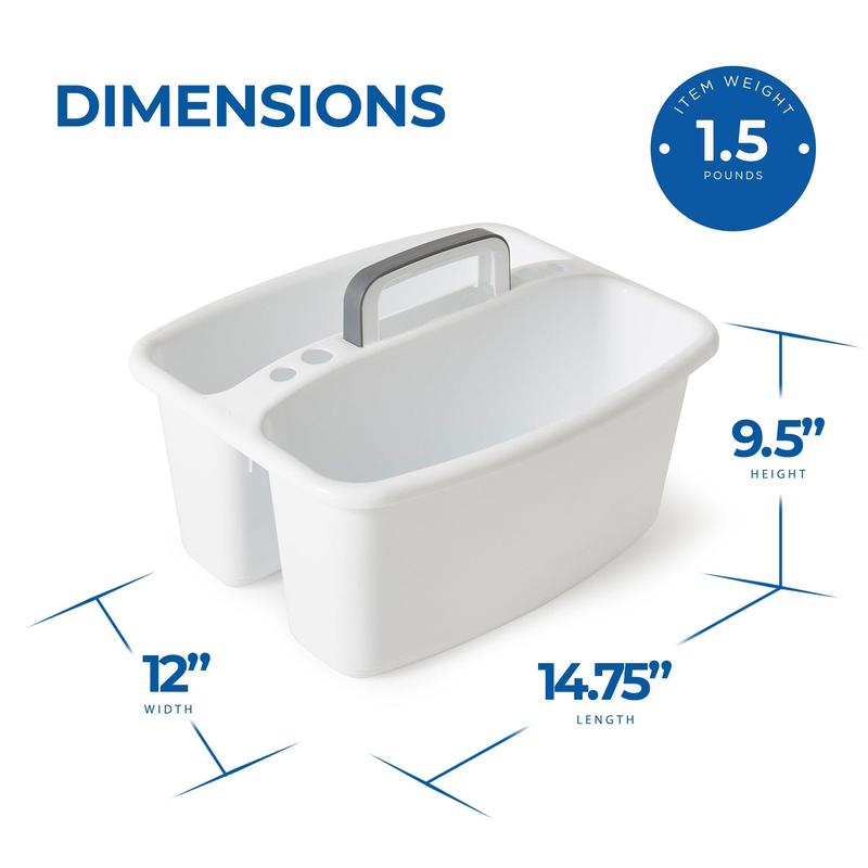 Whether you're a college student living in a dorm, a parent looking for bath storage for your kid's toys, or anything in-between, we all need a little organization in our lives. Get rid of unsightly clutter with Gracious Living Large Divided Storage Caddy. Keep all of your personal supplies neat and tidy in one convenient storage tote. Separate your cleaning supplies between the two sections for enhanced organization. The gray carry handle makes it easy to take this divided storage caddy on-the-go. Crafted from high-quality hard plastic, the Gracious Living Home Storage Tote Caddy is built to last. Measuring 14.75 inches long and 12 inches wide this tote is perfect for the bathroom, kitchen or laundry.Store small items like cleaning or art supplies in the Divided Home Storage Tote Cleaning Caddy from Gracious Living.