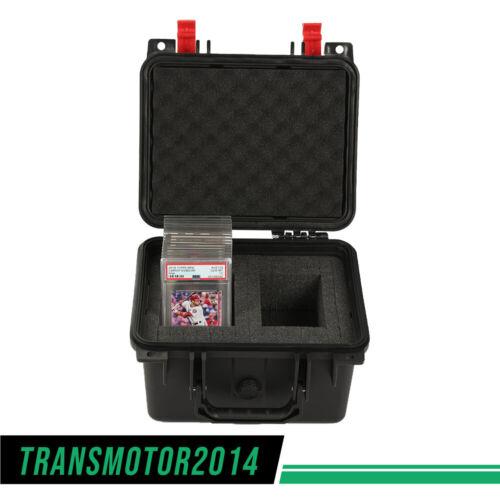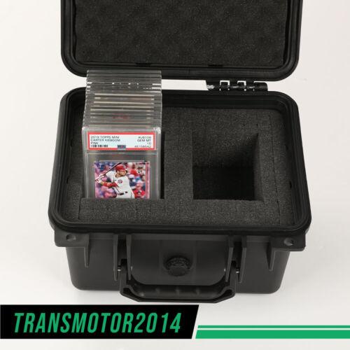 Secure, store, display, and transport your most valued collectibles in style in the roomiest professional, heavy-duty, weatherproof storage box travel case on the market. Easily customizable for your professionally graded sports cards from PSA, BGS, BVG, SGC, one-touch magnetic holders, and top-loaders, each case is constructed of durable, high-density polymer to provide outstanding strength, maximum shock protection, and weather resistance, and features charcoal-colored "pick and pluck" foam to create perfect, snug, and specialized shapes and custom configurations.