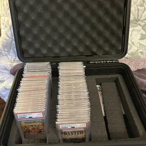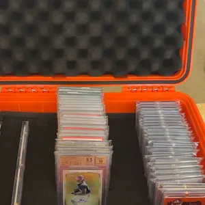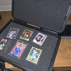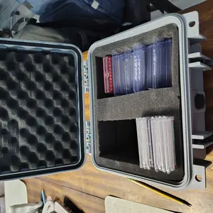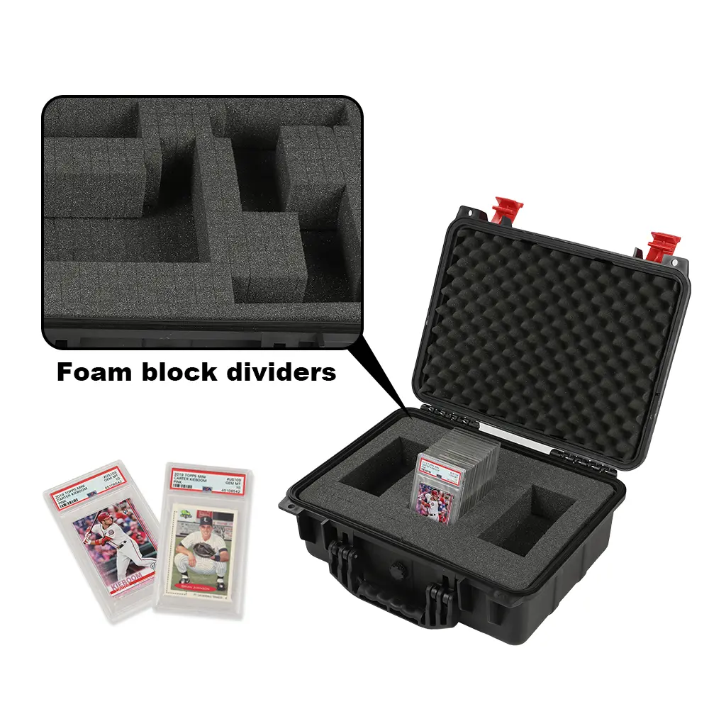 Secure, store, display, and transport your most valued collectibles in style with this professional, heavy-duty, weatherproof storage box travel case. Easily customizable for your professionally graded sports cards from PSA, BGS, BVG, SGC, one-touch magnetic holders, and/or top-loaders, each case is constructed of durable, high-density polymer to provide outstanding strength, maximum shock protection, and weather resistance, and features charcoal-colored "pick and pluck" foam to create perfect, snug, and specialized shapes and custom configurations. Fits 75+ graded cards or 250+ ungraded (varies by configuration and holder style).