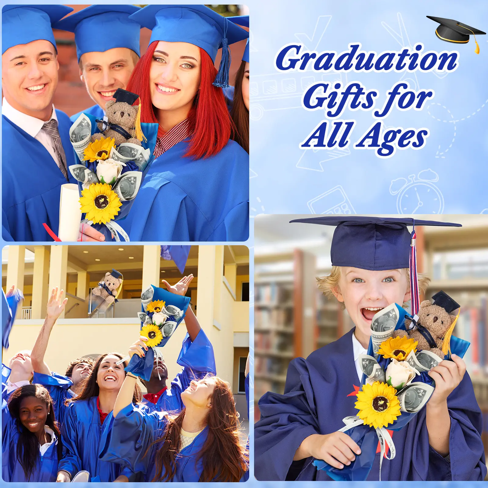 ·Wide Application: our plush flower bouquet for graduation is a thoughtful gift for college graduation, it can also be applied as a graduation party decoration
