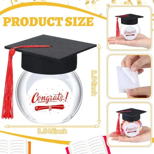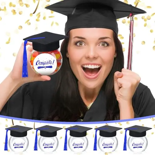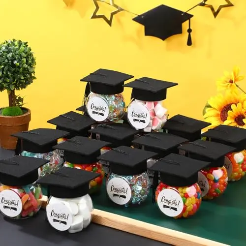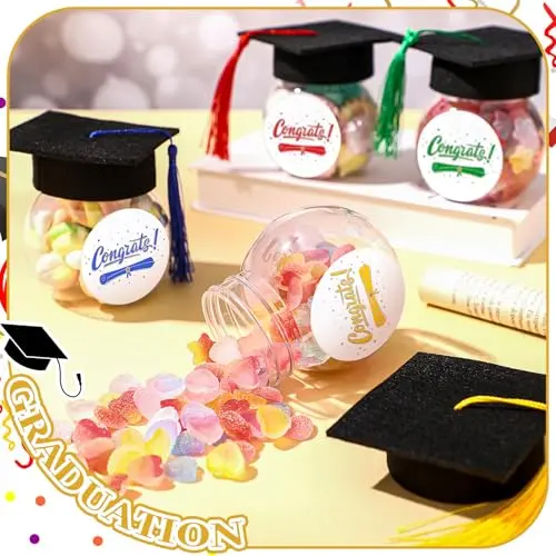 ✨ Perfect for Graduation Parties! 12/24 pcs of Class of 2026 Graduation Cap Candy Jars Set. Ideal for school party guests, these jars add a festive touch to your celebration. Comes in multiple colors, making it a versatile decoration. Each jar holds 8oz, perfect for serving treats. 🎉