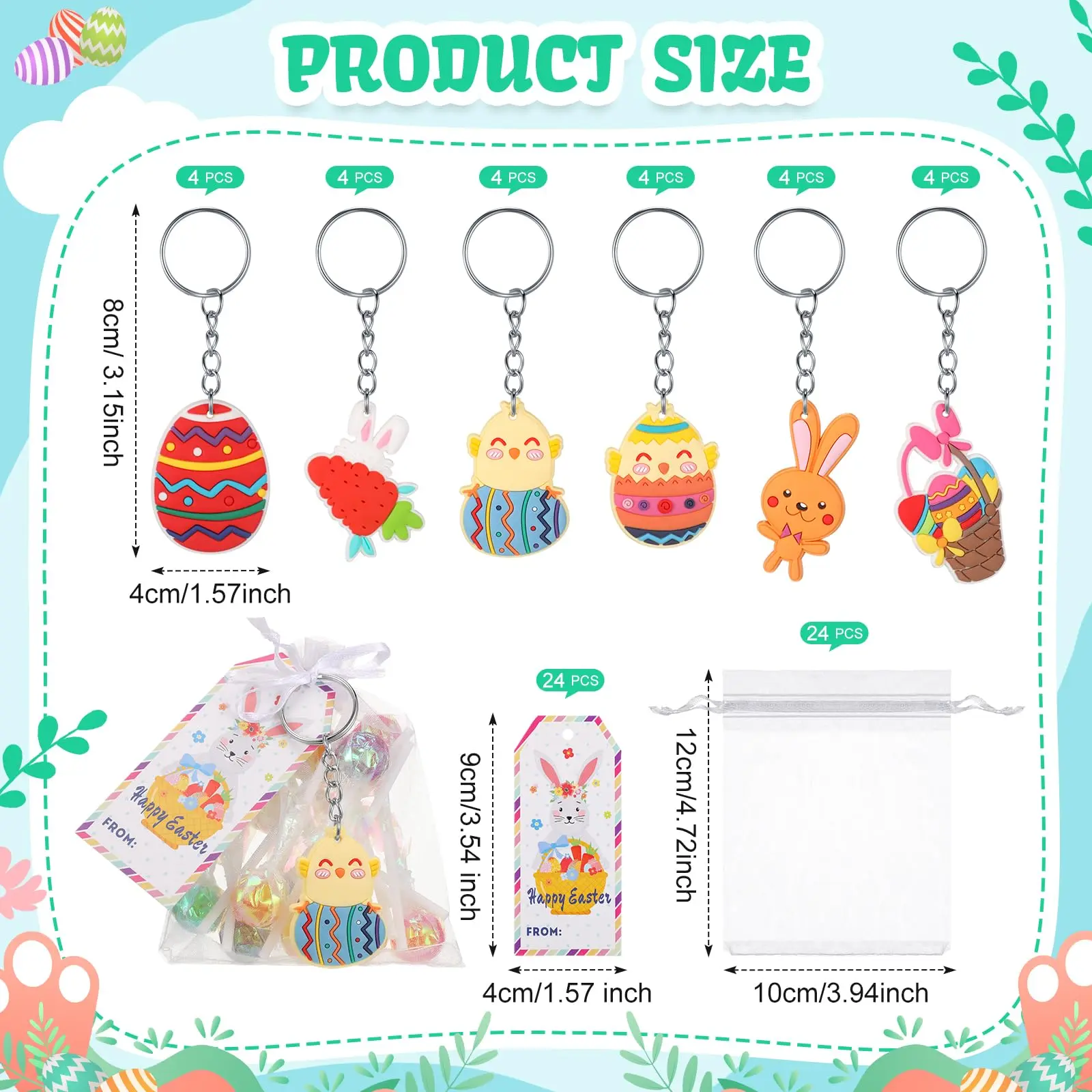 ·Easter Party Supplies: you will get 24 pieces of Easter keychains bulk, plus 24 pieces of wish tags and 24 pieces of organza bags; Sufficient quantity and different patterns will meet your different using and replacement demands, you can also share them with your family and friends