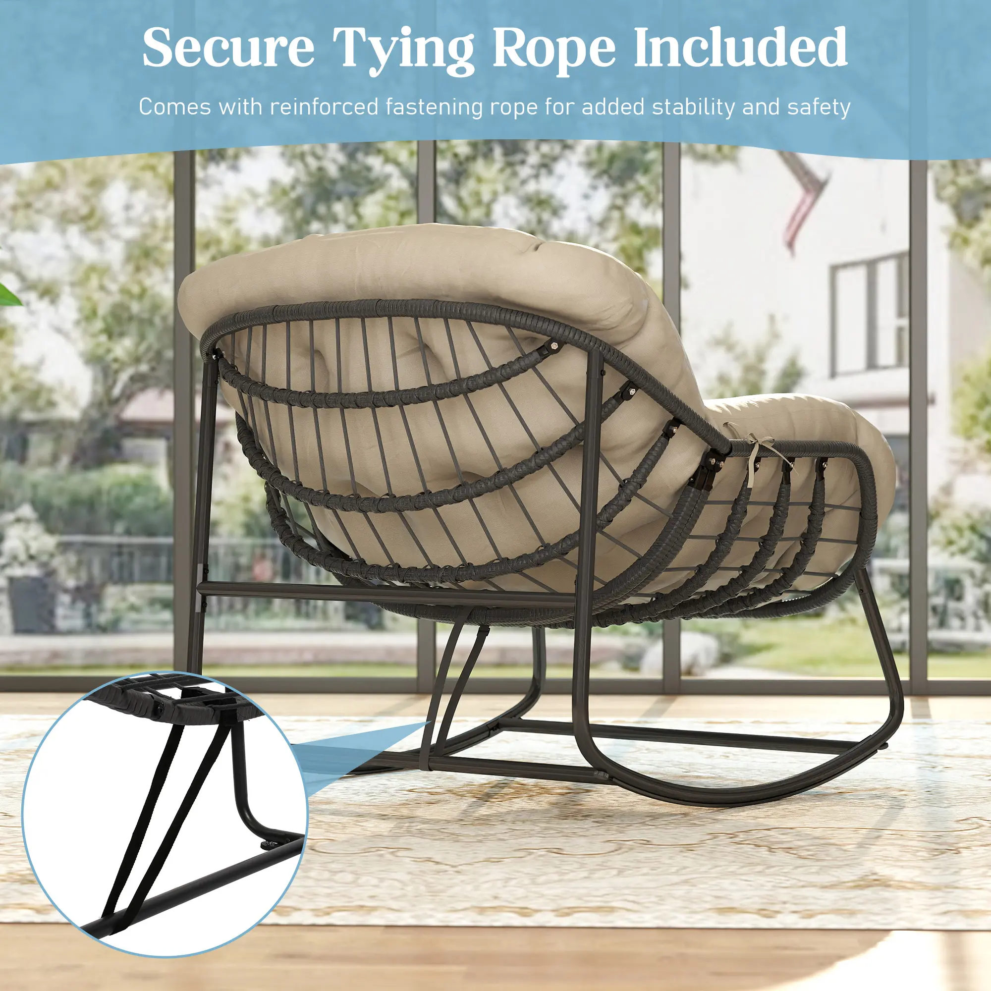 5. Outdoor Rocking Chair with Thick Cushion,450/550 lbs Capacity, Indoor Egg Rocking Chair with Adjustable Backrest for Backyard, Balcony, Living Room